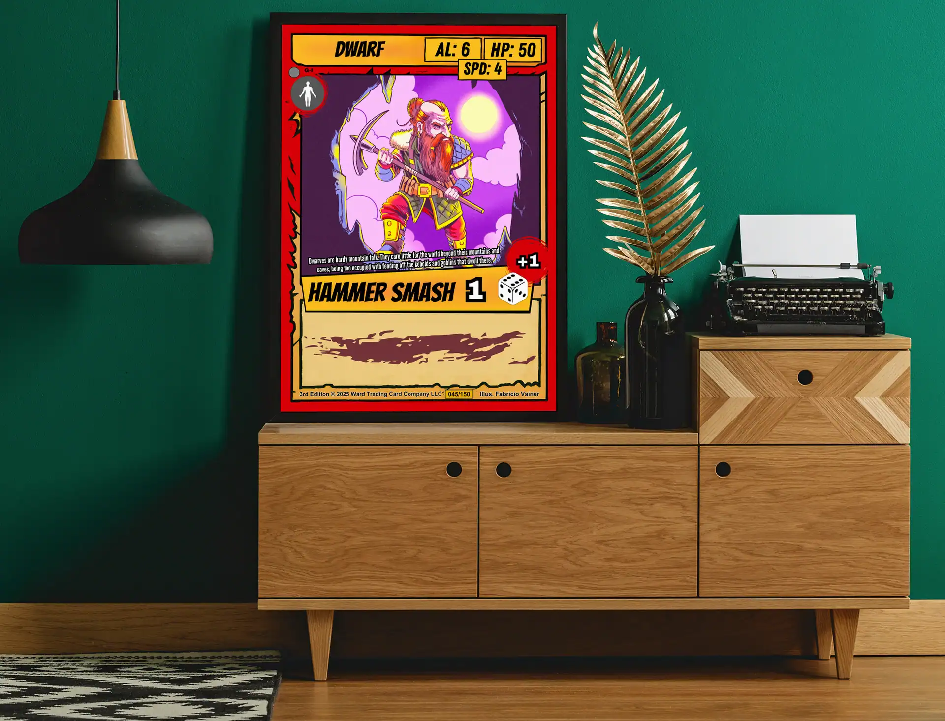 This canvas print reproduces original artwork by Ward Trading Card Game. Noble Dwarf is an authorized print partner — all prints are produced with the creator’s permission on archival canvas with 100-year fade-resistant inks.