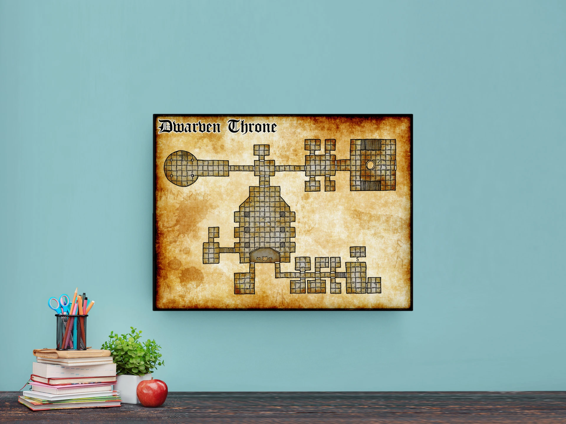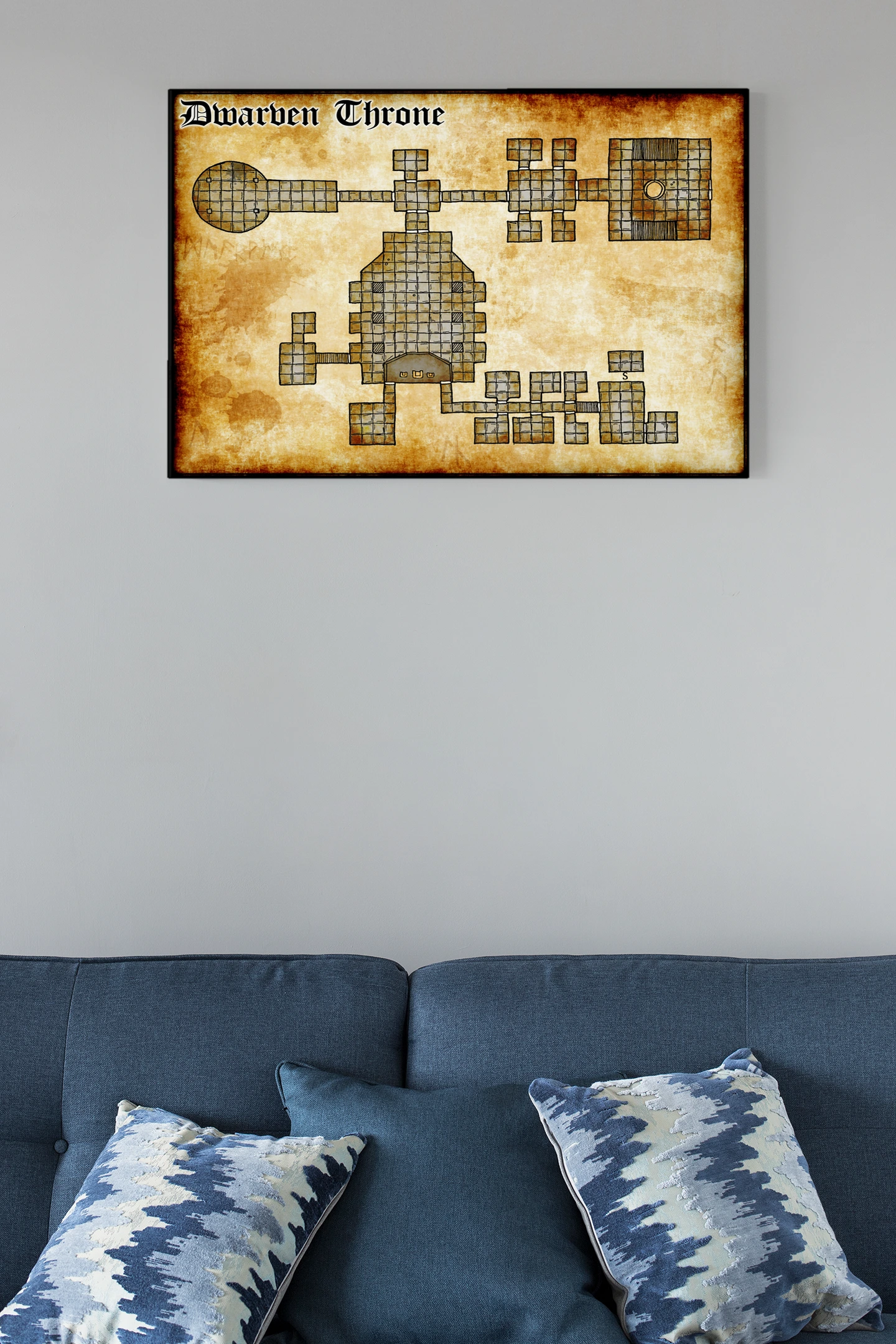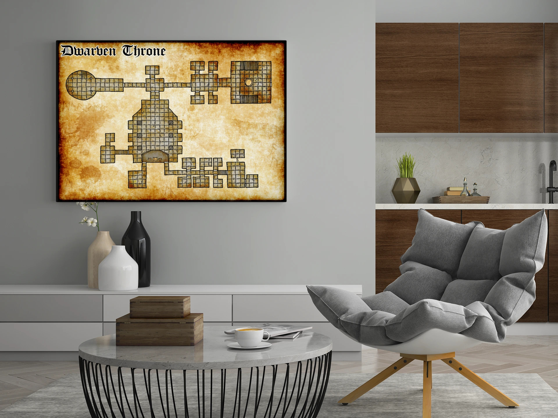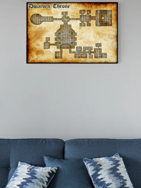 This piece functions as both campaign asset and declaration of craft. It names the buyer who runs complex dungeons and values functional beauty at the table. The dwarven throne room fantasy battle map canvas print particularly suits DMs who treat maps as architecture.