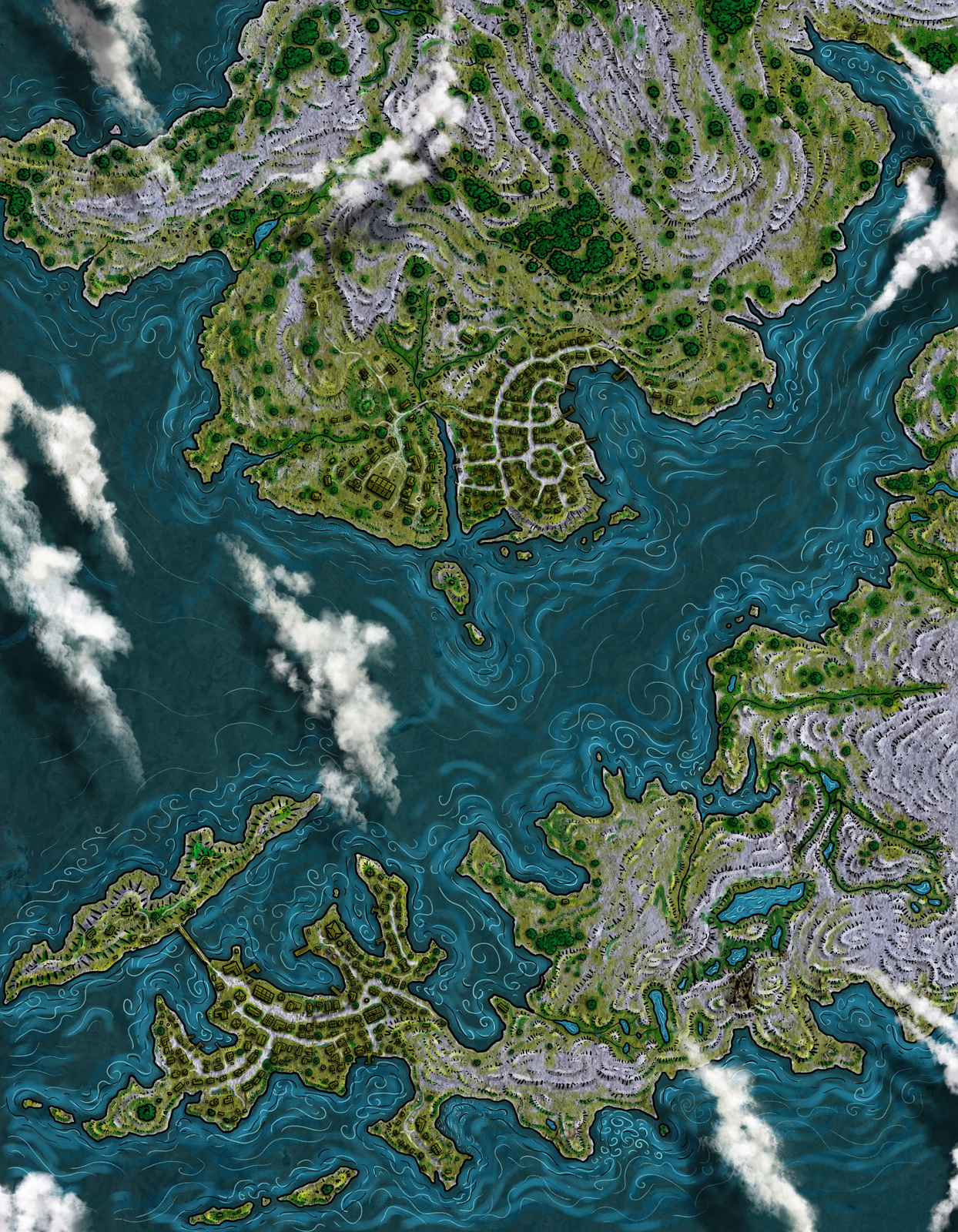 Edgepond City Fantasy Map with fjords, villages, and dramatic coastal detail