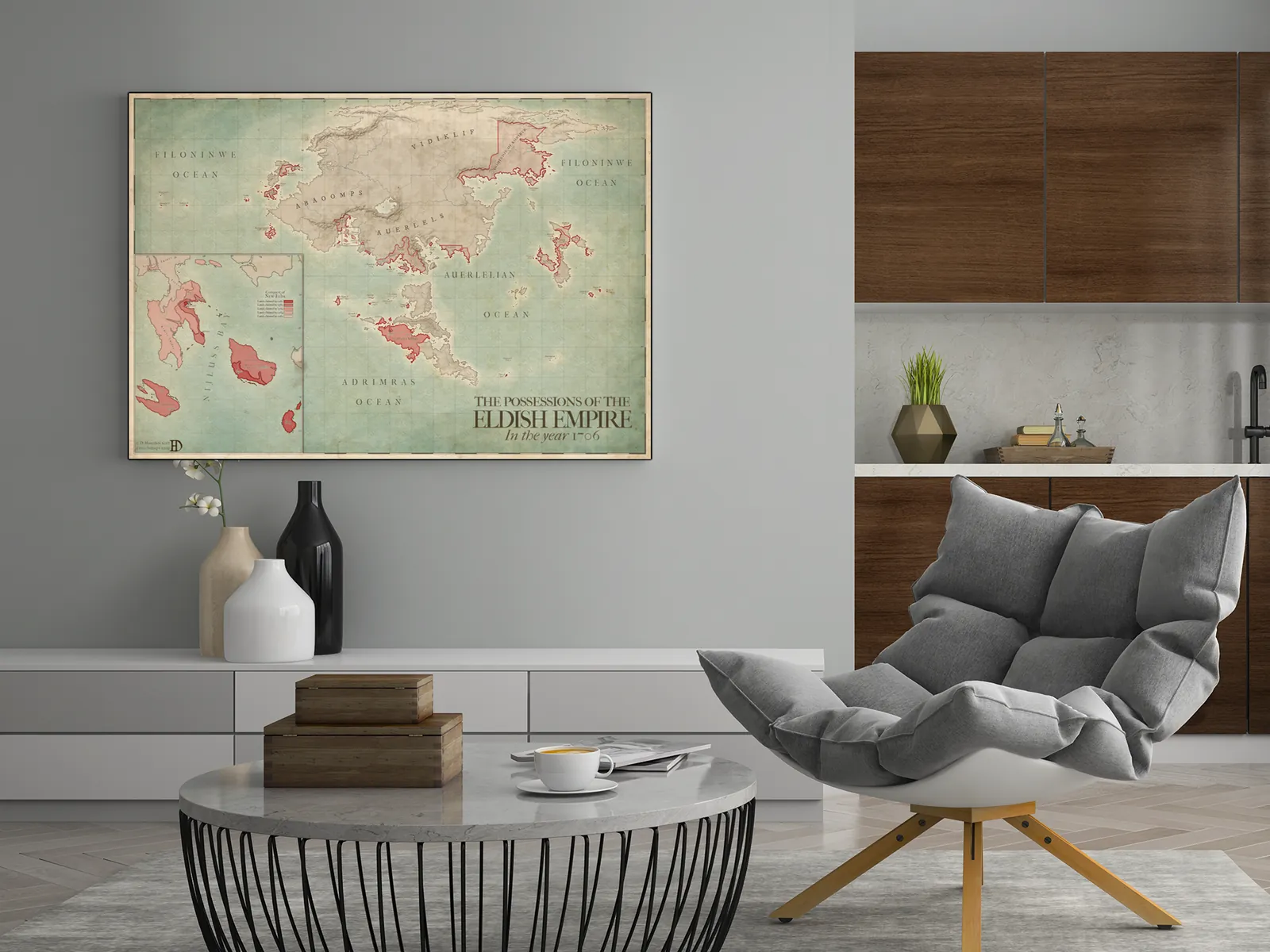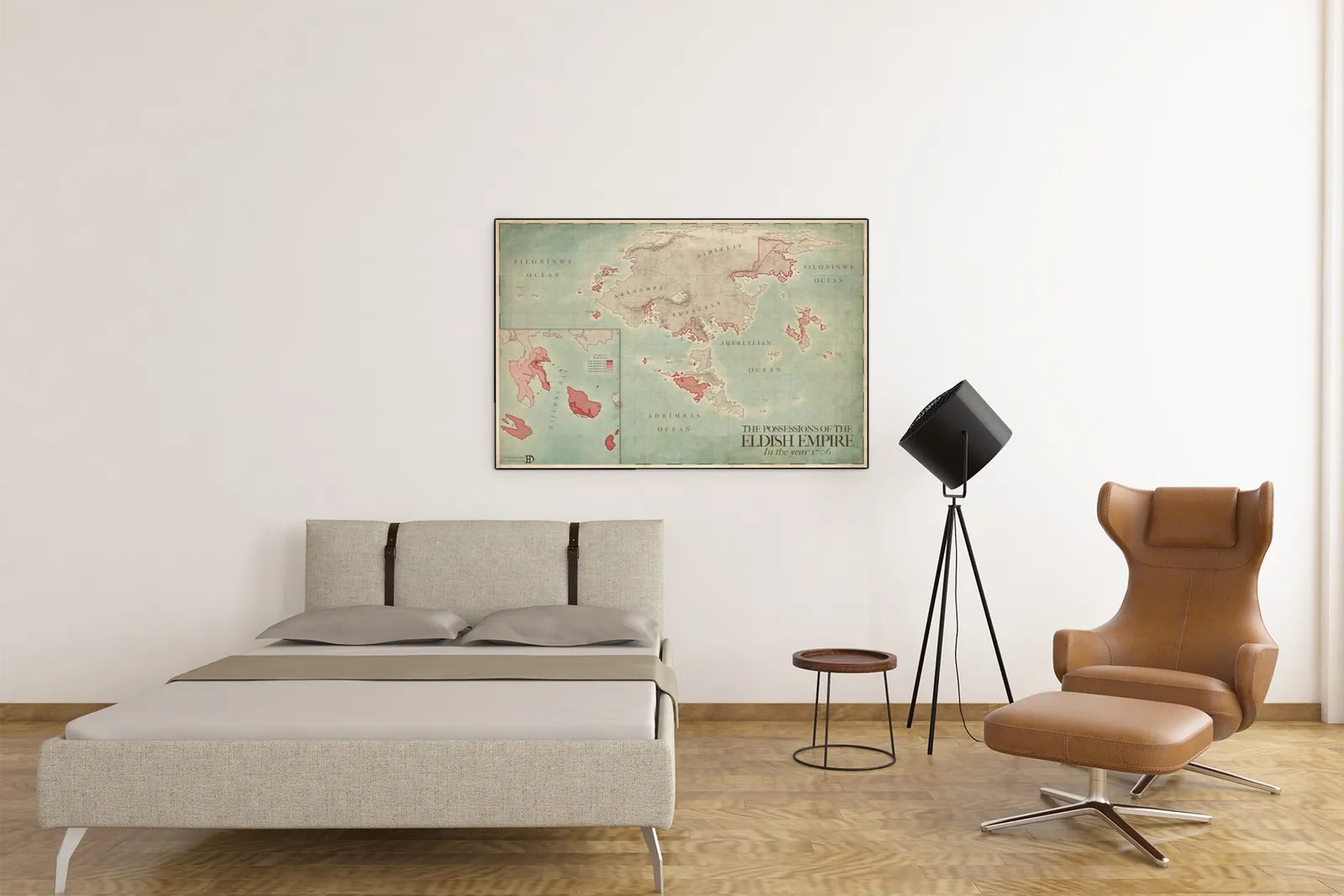 Finally, the Elda Eldish Empire Map excels as both a storytelling tool and a display piece. Above all, it supports worldbuilders who need a believable imperial footprint while also offering collectors a refined, museum-style fantasy map suitable for long-term wall display.