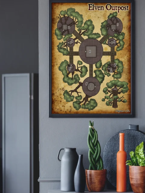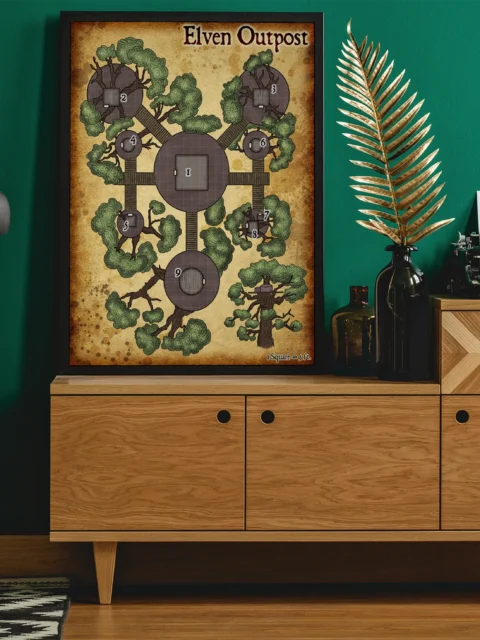 Vertical encounter design separates this from ground-level dungeon crawls and keeps archers relevant. Dungeon masters running wilderness campaigns and forest ambushes need maps that justify ranged tactics. This elven outpost fantasy battle map canvas print particularly supports three-dimensional combat without miniature stacking.
