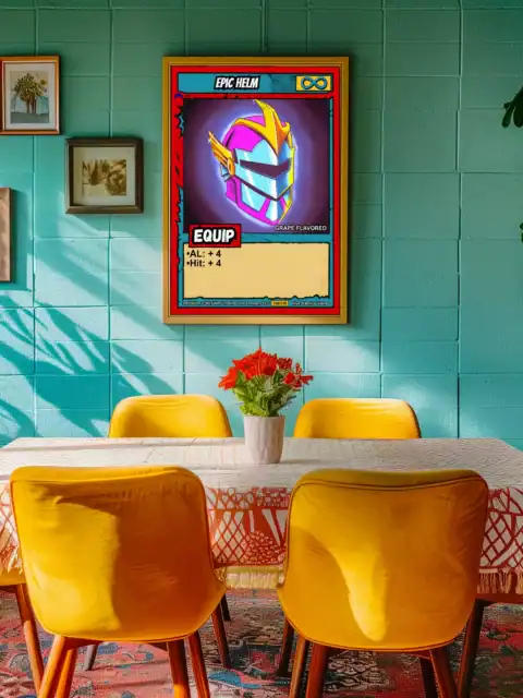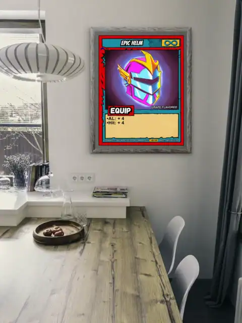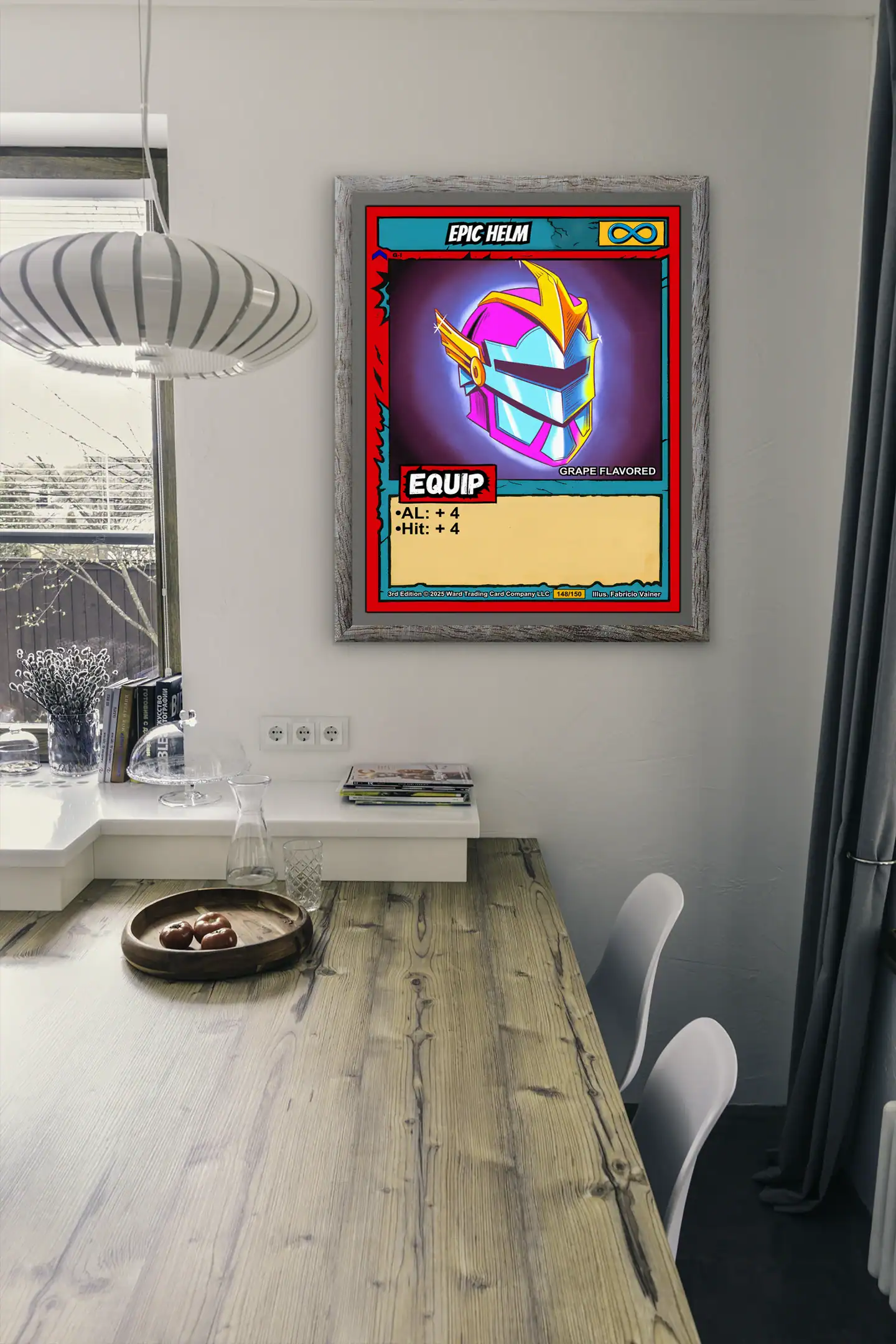 TCG collectors recognize quality card art that deserves display beyond deck sleeves. Equipment cards represent power and progression in fantasy gaming culture. This epic helm trading card canvas print particularly honors that collector mindset.