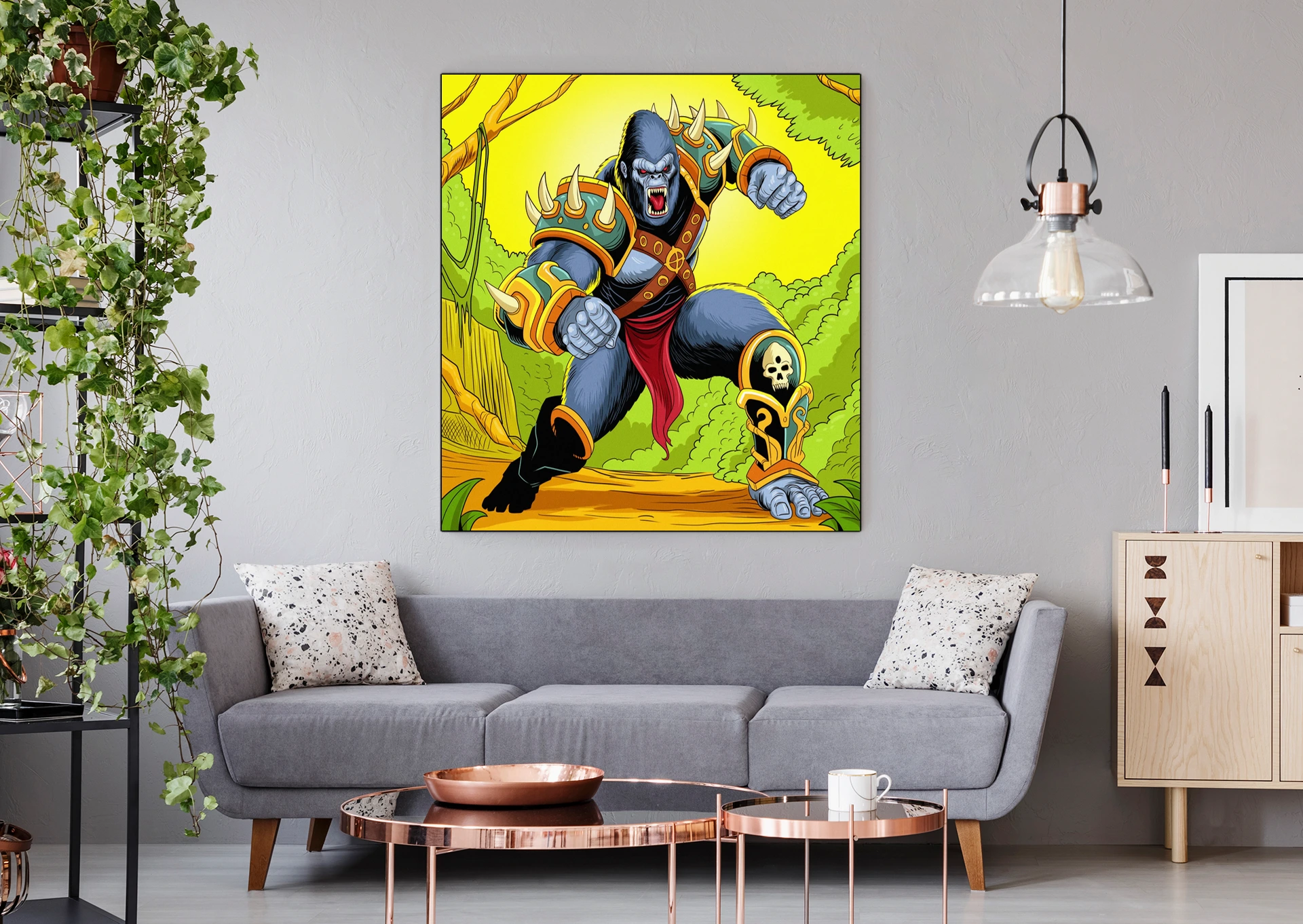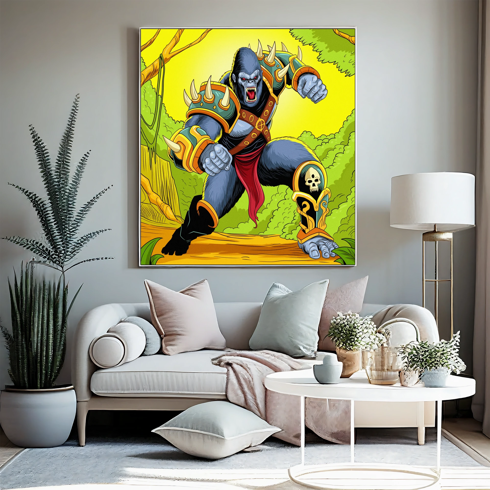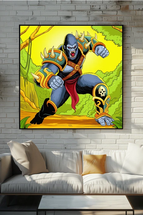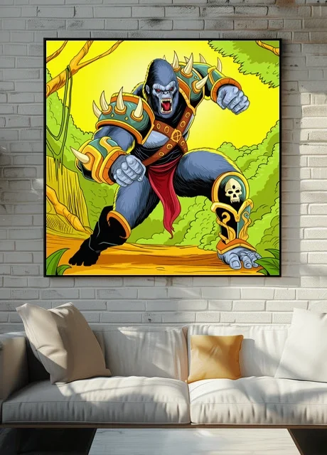 Display this in game rooms alongside other primate warrior art or creature-focused collections. Additionally, the bright palette and bold outlines complement creative studio spaces with animated art.