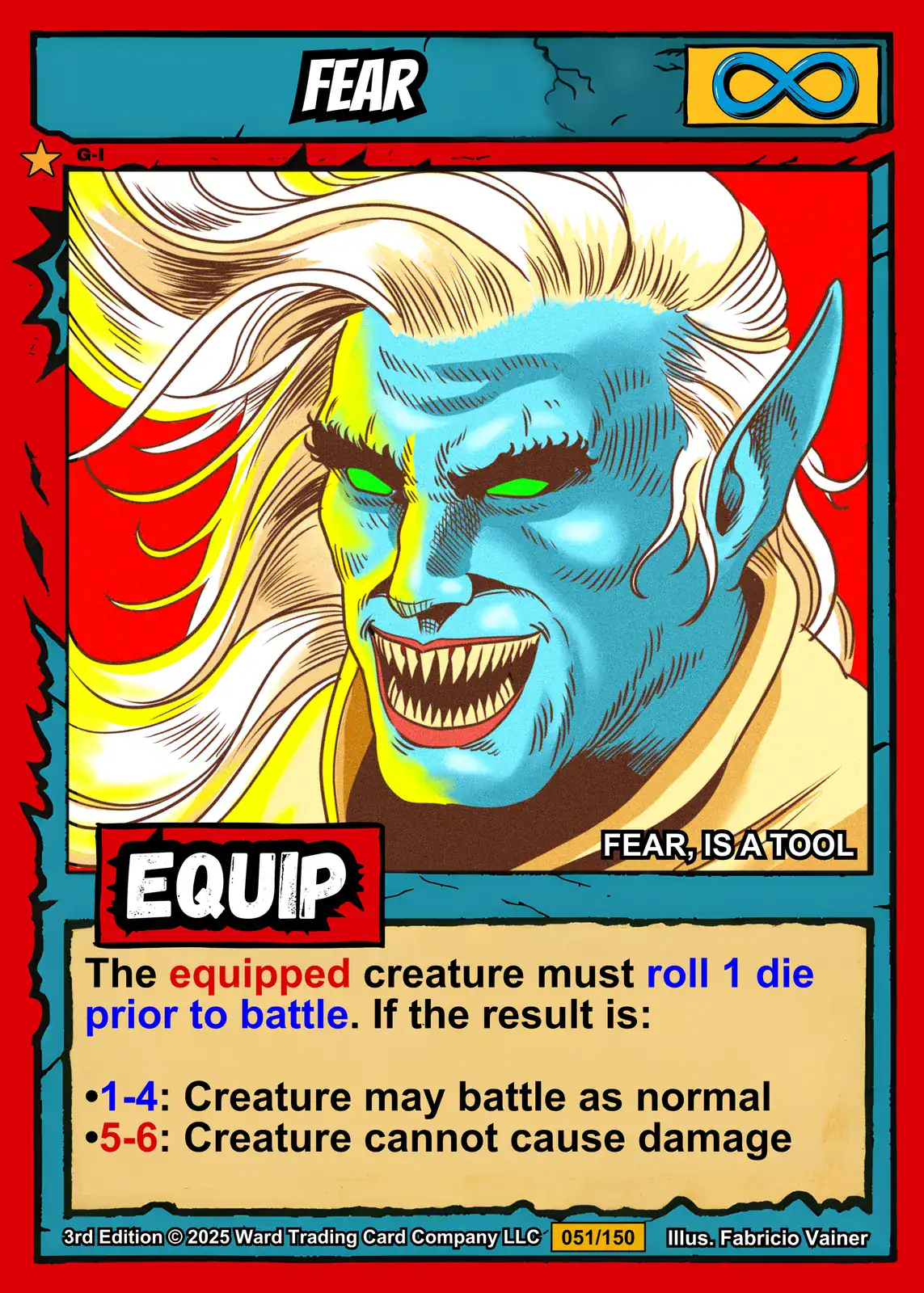 What is more, the red border frames jagged black edges in classic TCG style. The turquoise banner displays the infinity symbol in bold yellow. Meanwhile, aged parchment text boxes complete the authentic Ward card format.
