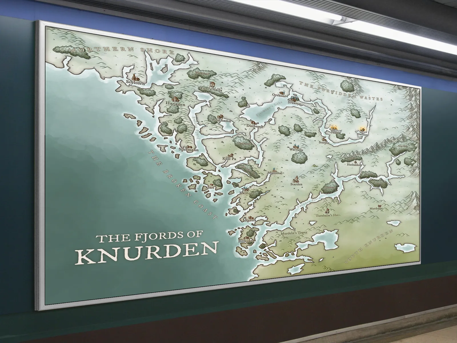 Ideal for Dungeon Masters running exploration-heavy or coastal campaigns, writers developing northern fantasy regions, or collectors seeking detailed regional fantasy cartography.