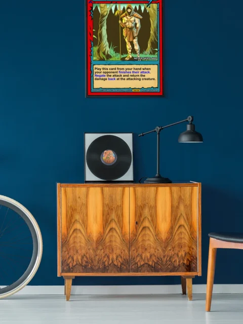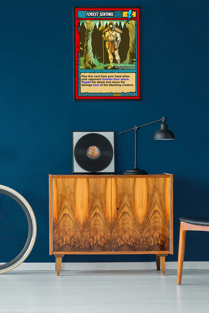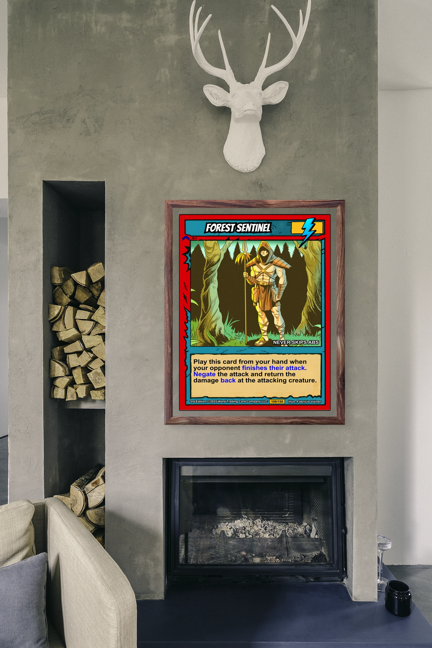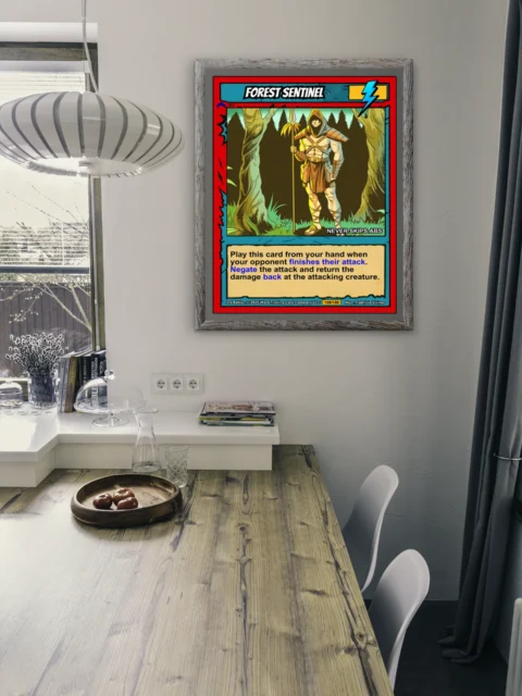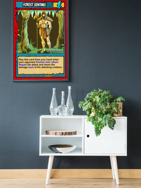 Dungeon masters recognize the archetypal forest guardian protecting ancient groves. TCG collectors value Vainer’s character design from the Casey brothers’ acclaimed game. Particularly, this forest sentinel trading card canvas print anchors any fantasy collection.