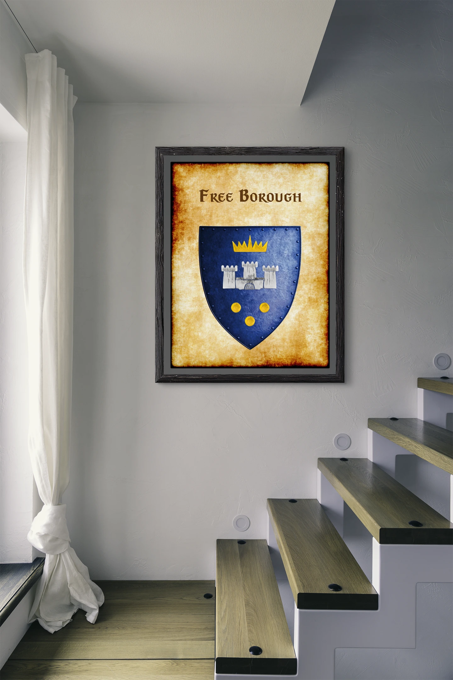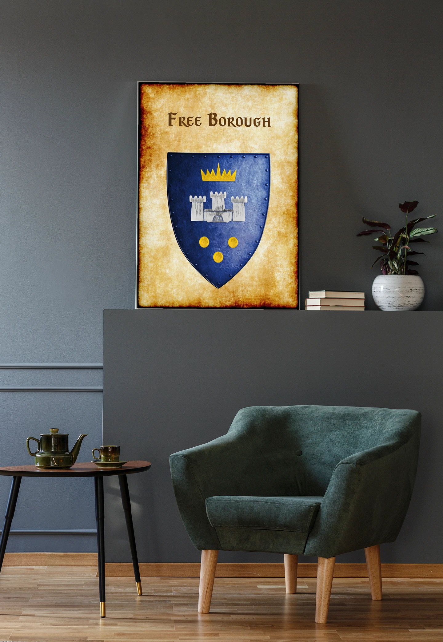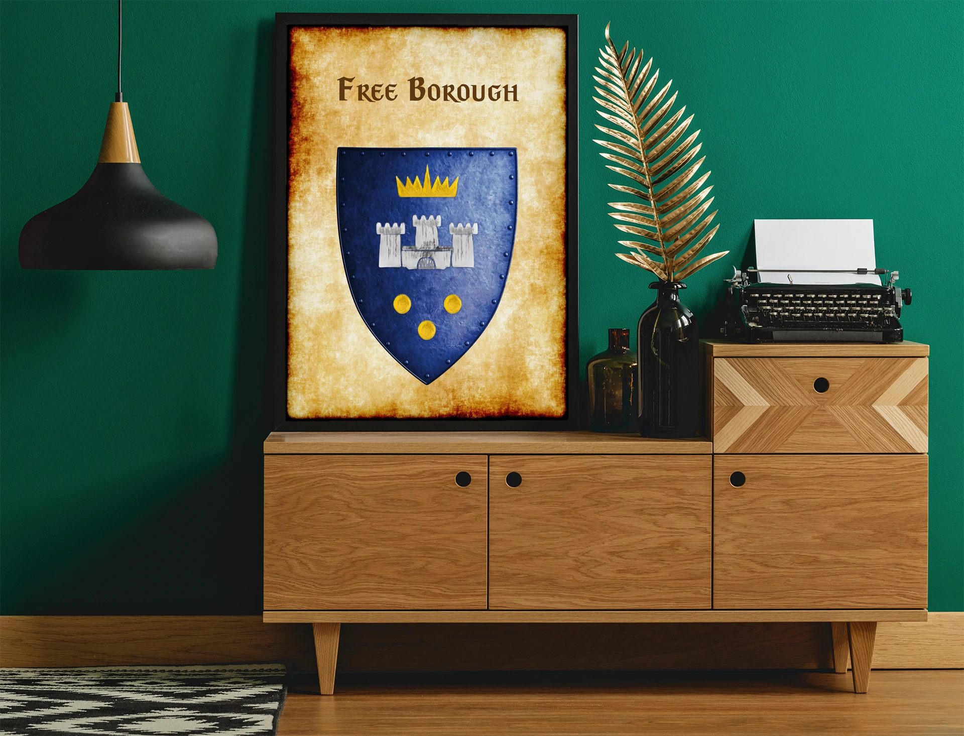 Castle heraldry speaks to players who value strongholds and political power. Greyhawk collectors recognize the significance of free borough governance in Flanaess politics. Particularly, this free borough Greyhawk heraldry canvas print anchors any campaign room.