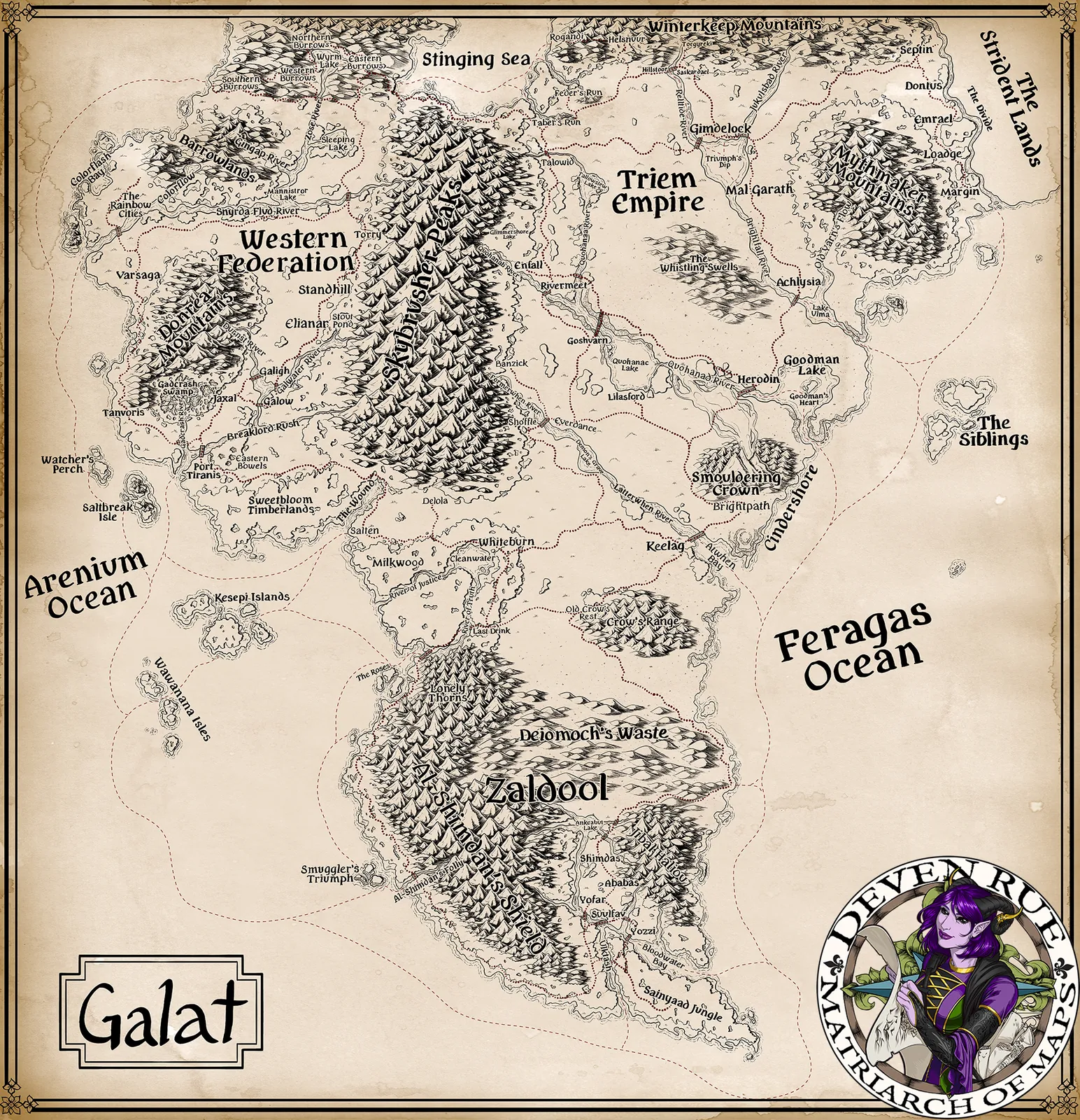 Galat Map is a richly detailed continental world map canvas built for expansive fantasy campaigns. It anchors storytelling and strategy with clarity and authority.