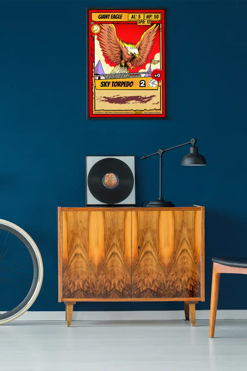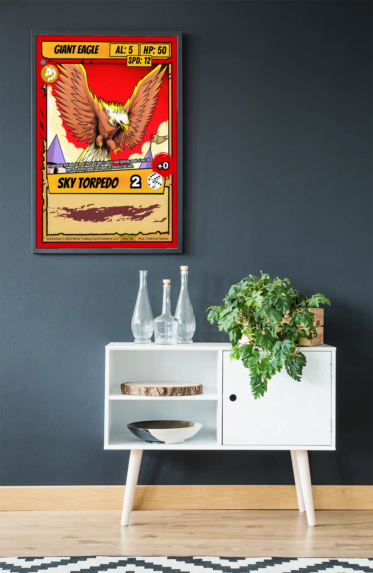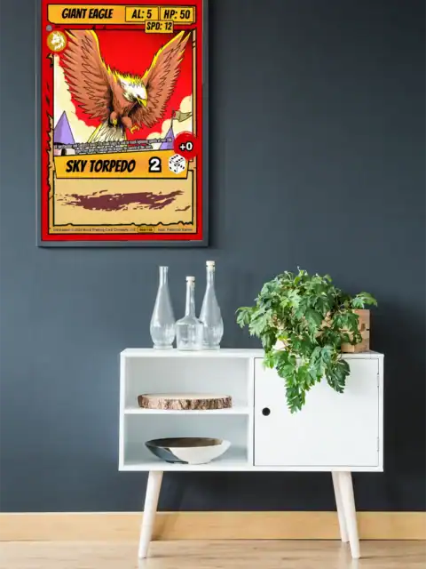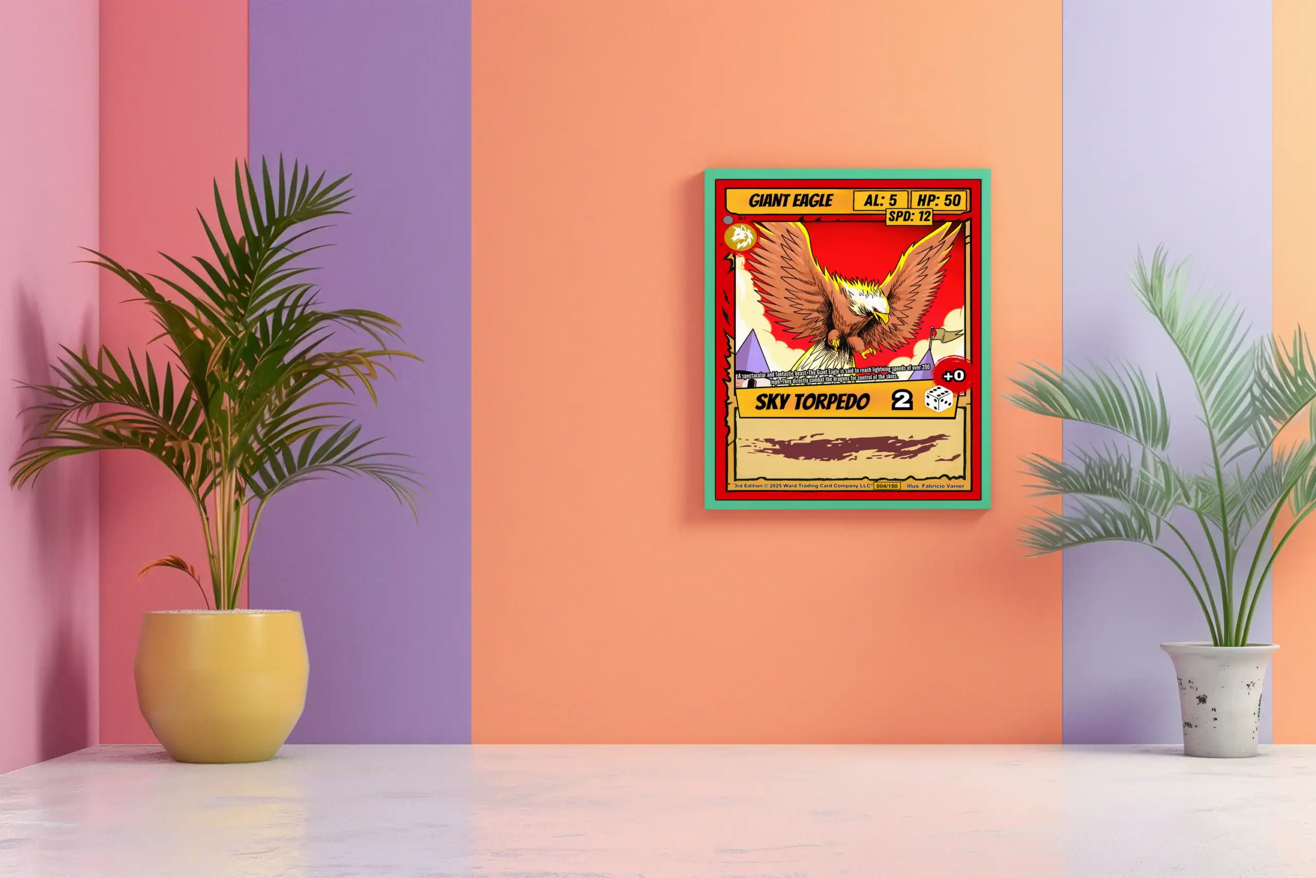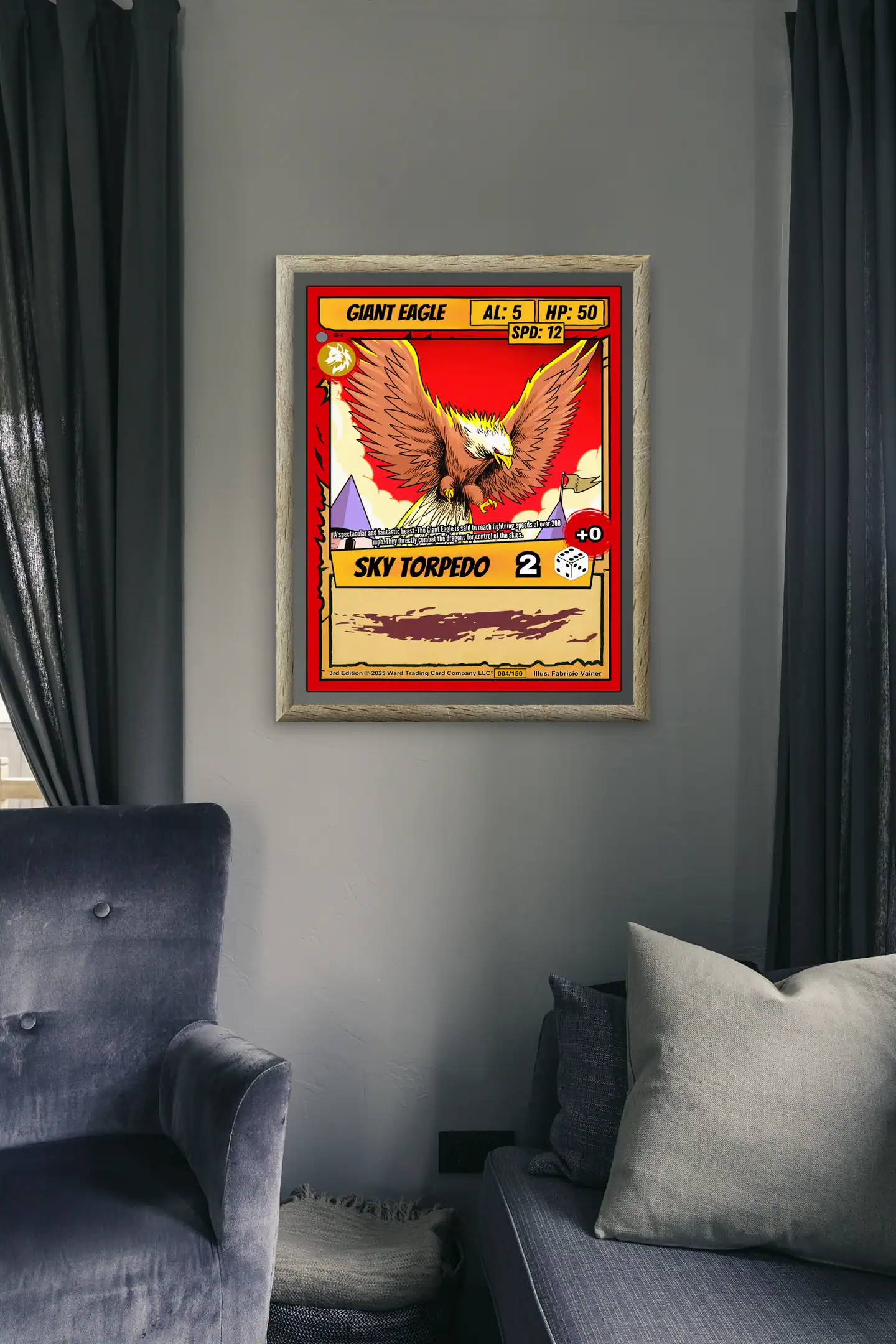 Owning this piece marks you as someone who appreciates both gaming heritage and dynamic art. TCG collectors understand the appeal of iconic creature cards displayed at proper scale. This giant eagle trading card canvas print particularly resonates with fans of classic fantasy gaming.