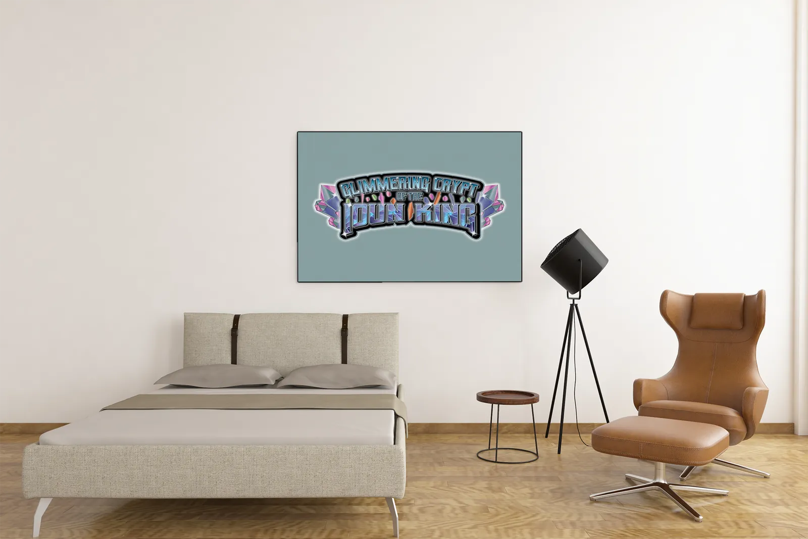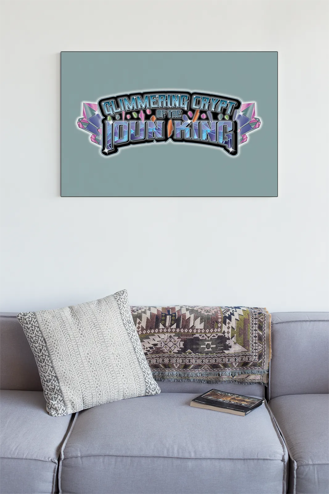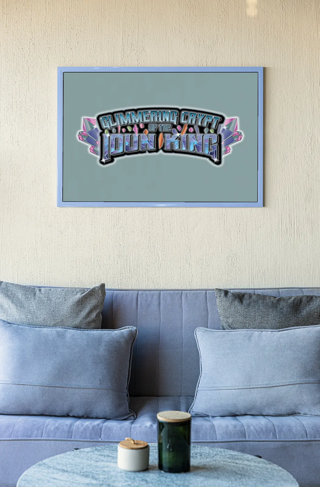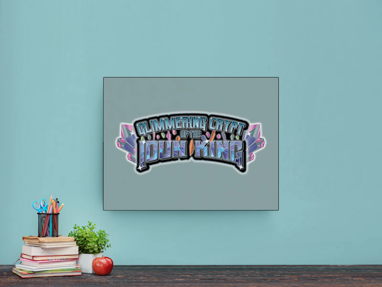 Finally, luminous blues, purples, and prismatic highlights drive the impact, transforming the symbol into a beacon rather than a background element. Consequently, the image reads as a declaration of identity and dominance, designed to anchor attention and define the world it represents, including the Glimmering CryptIoun King logo gallery print.
