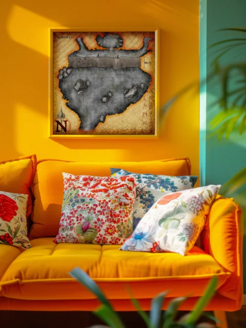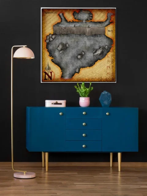 A collector wall alongside other fantasy art prints gains a functional dungeon reference. Indeed, the gridded layout supports encounter planning between sessions.