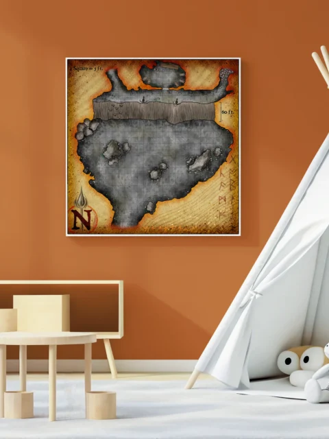 This map reads like a campaign artifact pulled from a module. Dungeon masters running goblin encounters recognize the tactical layout immediately. Particularly, this goblin lair no labels fantasy battle map canvas print works for DMs who prep encounters visually.