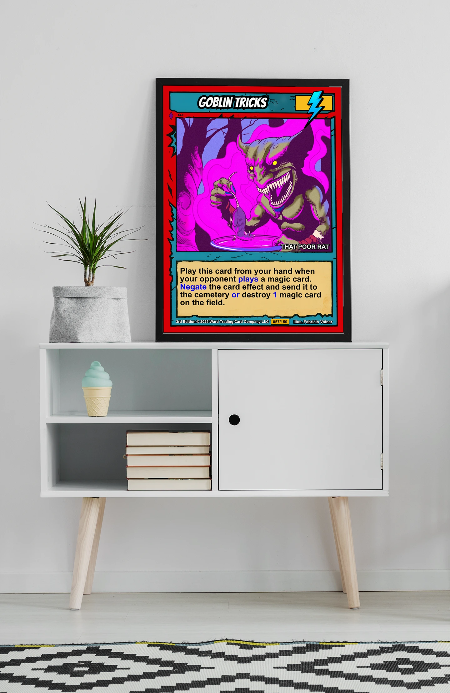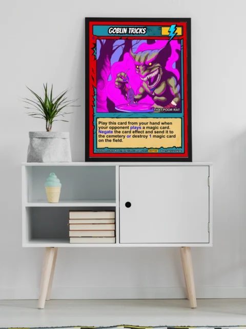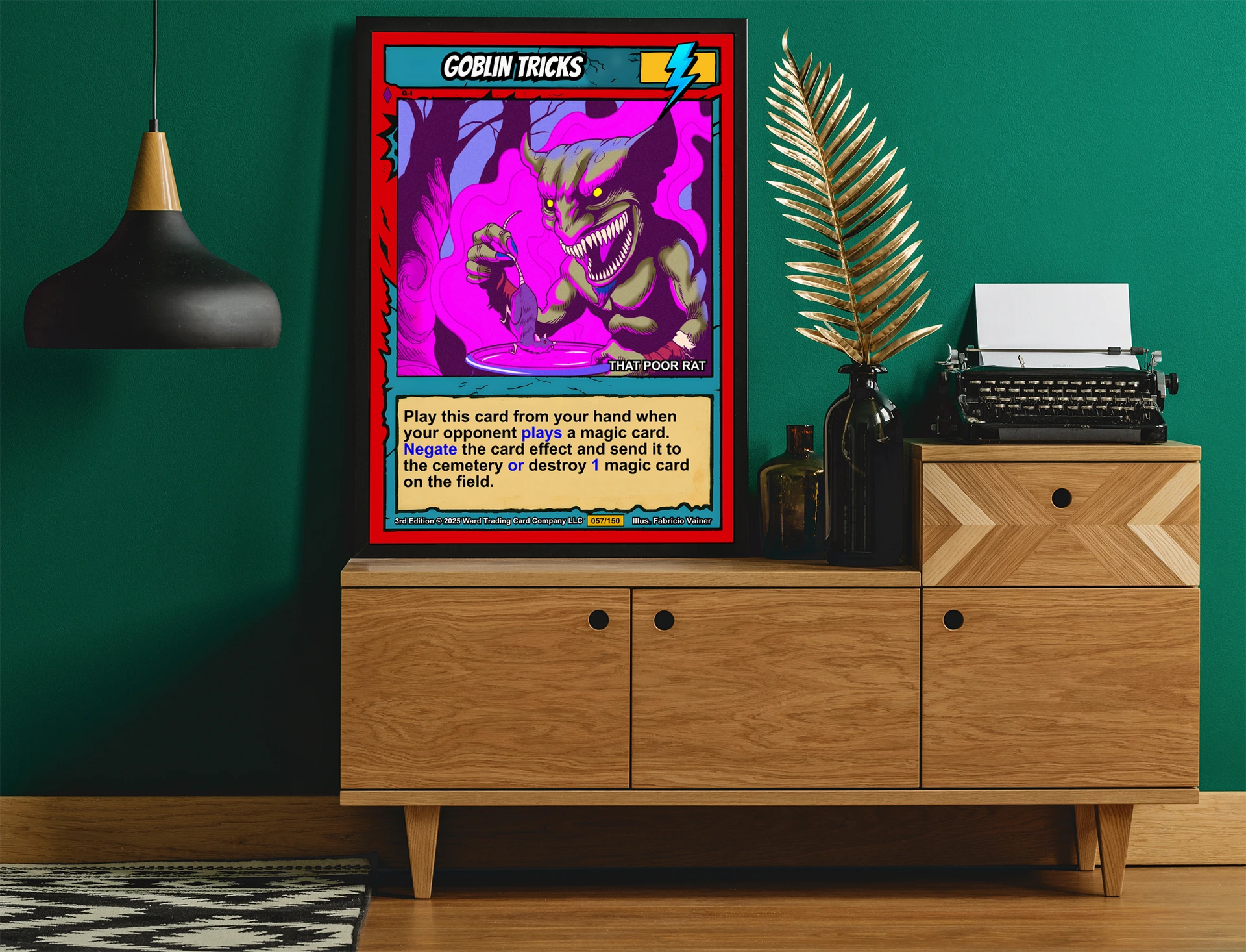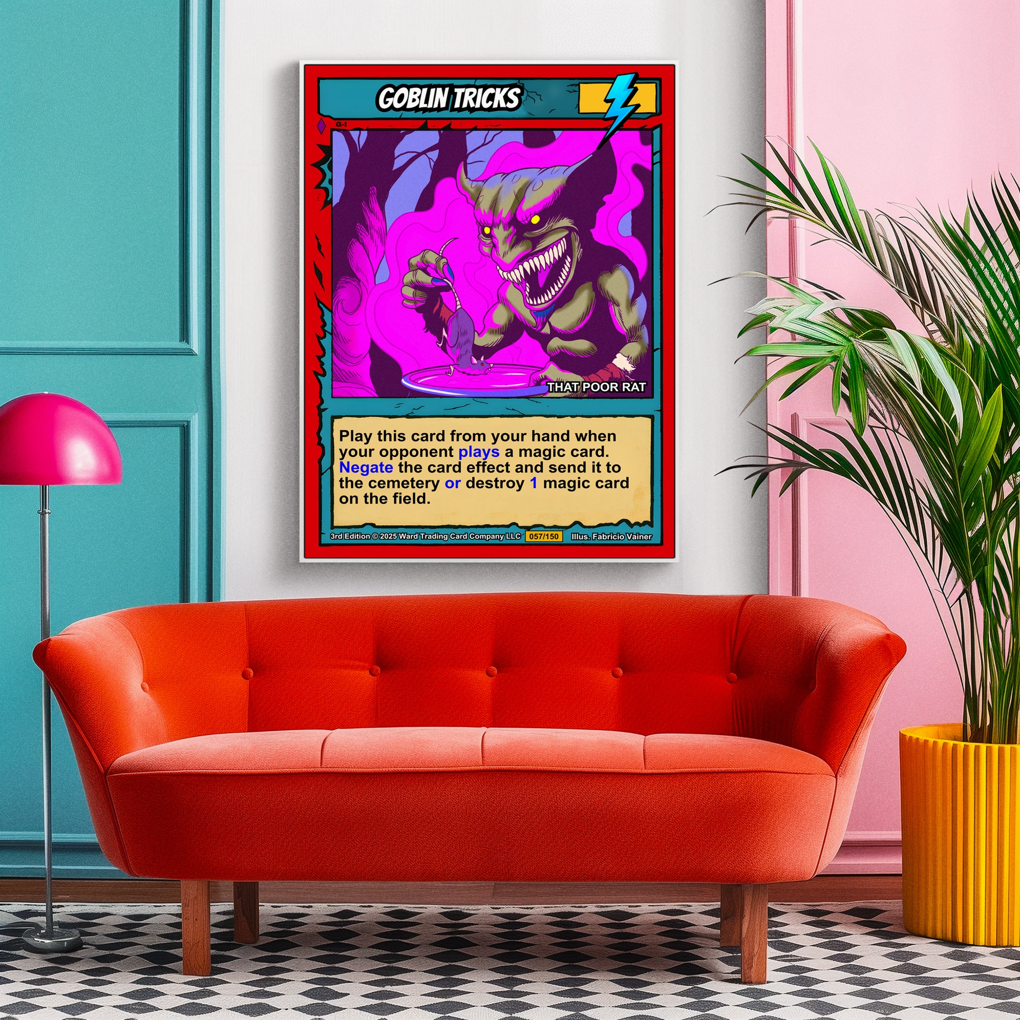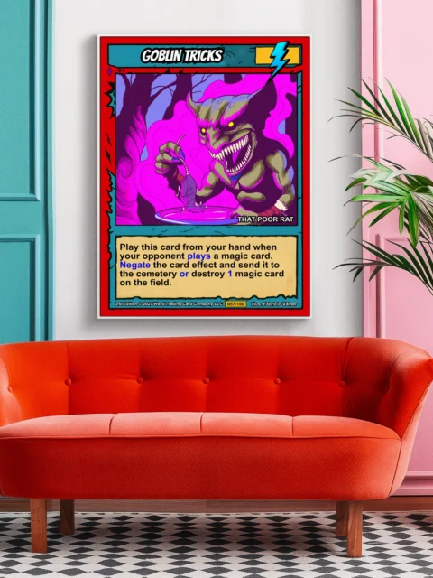Dungeon masters use this piece to inspire memorable goblin encounters during sessions. TCG collectors and fantasy enthusiasts recognize quality character art when they see it. Particularly, this goblin trading card canvas print brings Vainer’s playful creature design into any collection.