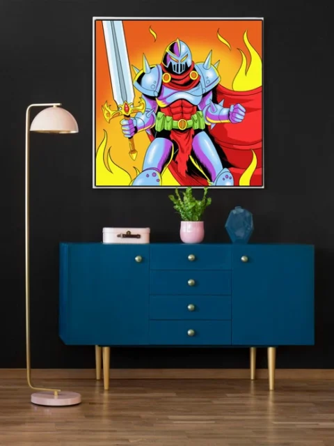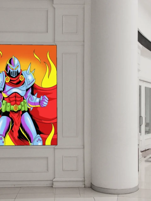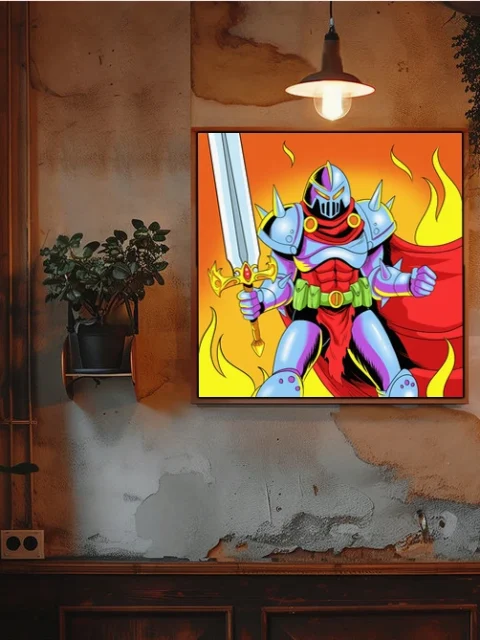 On the wall, the high-saturation palette holds intensity a thumbnail cannot deliver. Ward TCG collectors and retro action cartoon enthusiasts gain a gallery-ready centerpiece. This hell authority art trading card art canvas print brings Vainer’s heroic fantasy vision to full scale.