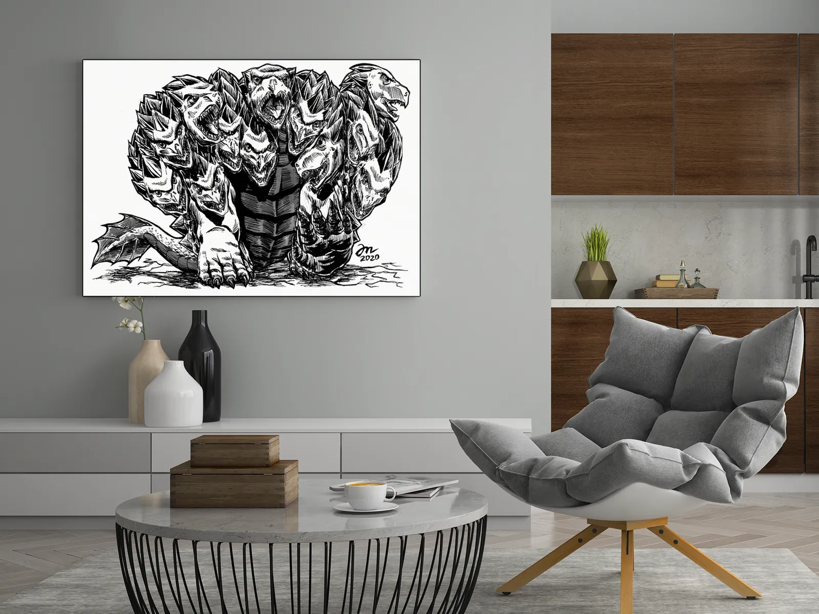 Hydra embodies relentless danger multiplied without mercy. This artwork delivers Hydra fantasy canvas print as a powerful vision of mythic threat and escalation.