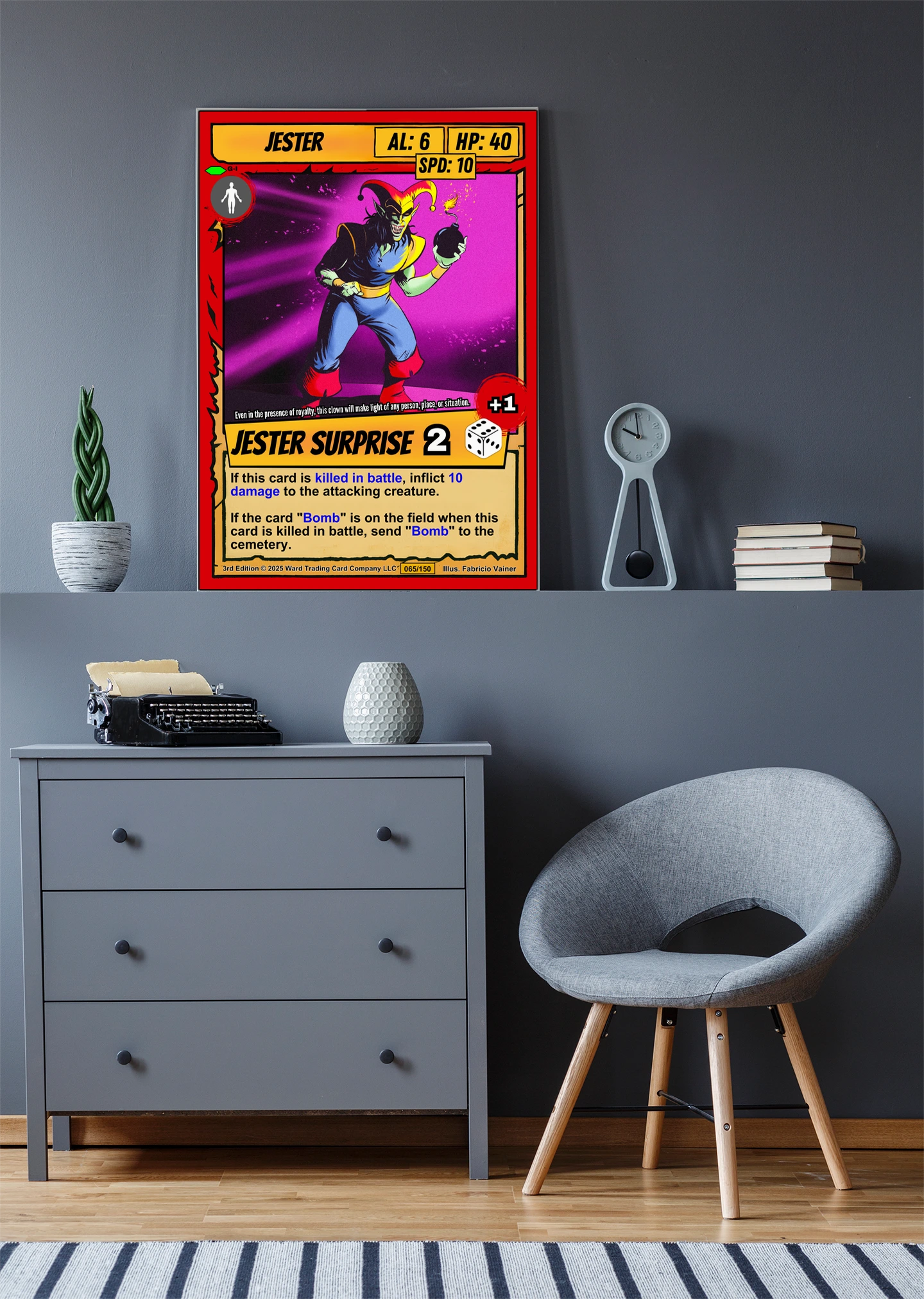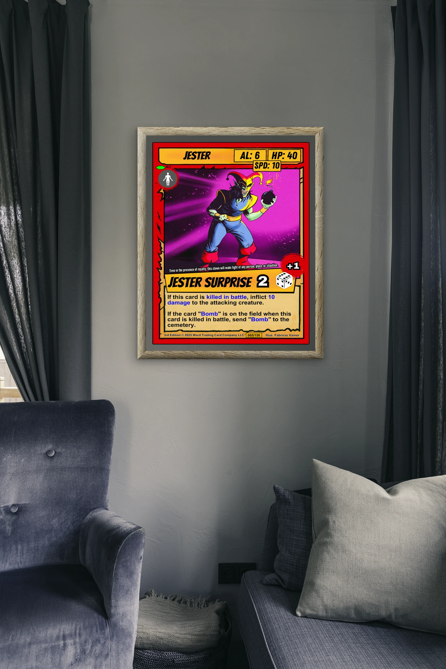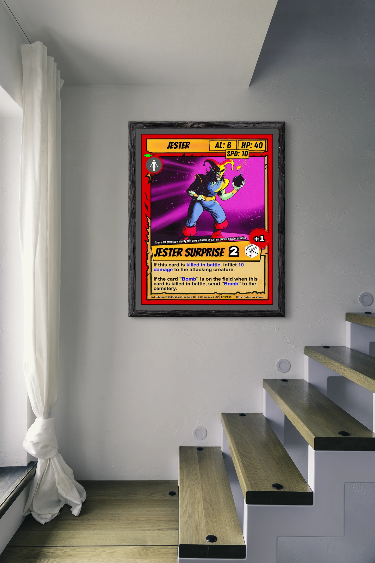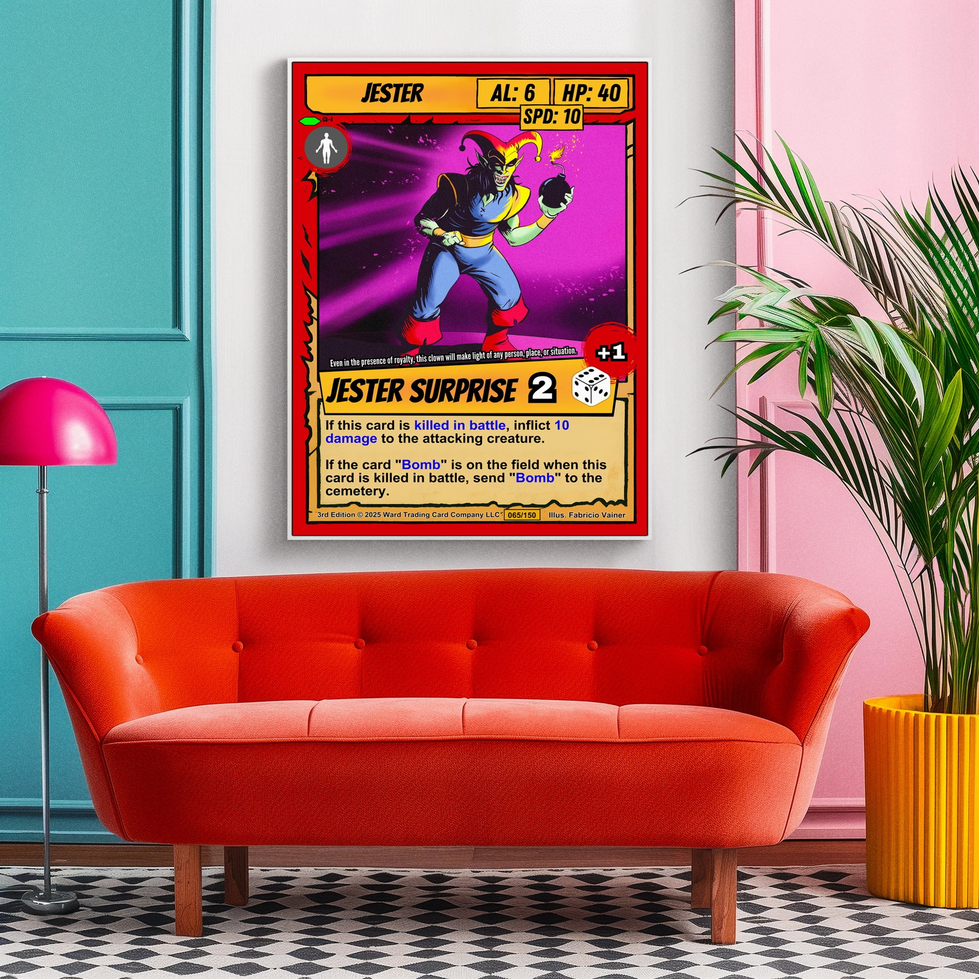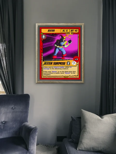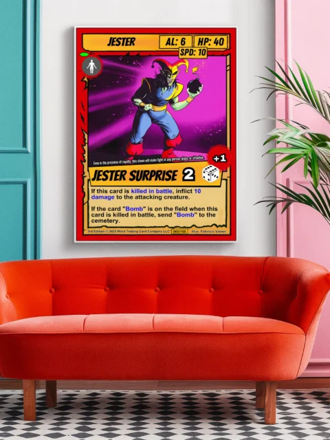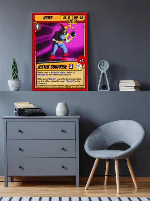 Canvas reproduction brings out color depth that digital screens cannot match. TCG collectors and fantasy art enthusiasts recognize quality printing of iconic game artwork. Particularly, this jester trading card canvas print delivers the full card experience at room scale.