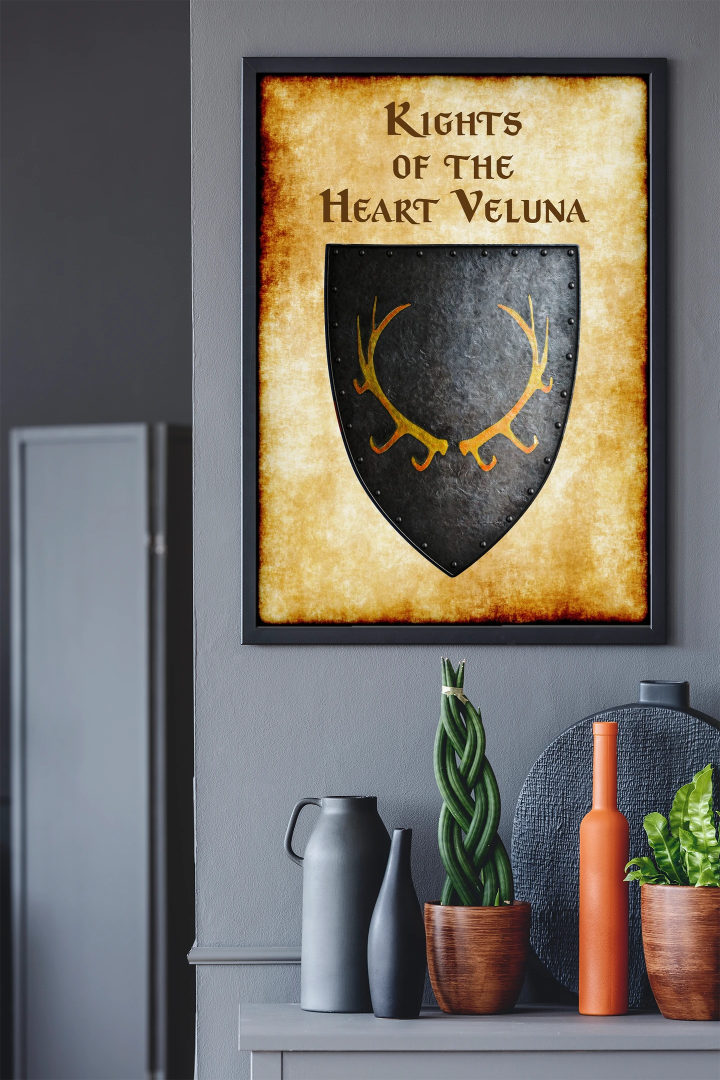 Veluna’s star-and-crescent design commands recognition among Greyhawk heraldry. Collectors value Anna Meyer’s manuscript illumination style and historical accuracy. This veluna Greyhawk heraldry canvas print particularly appeals to clerical campaign enthusiasts.