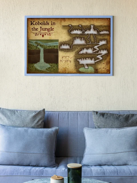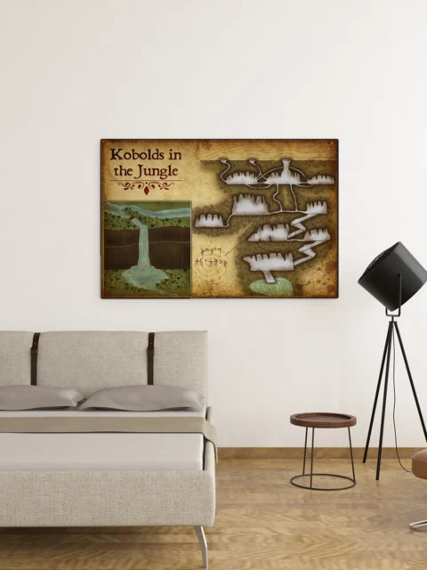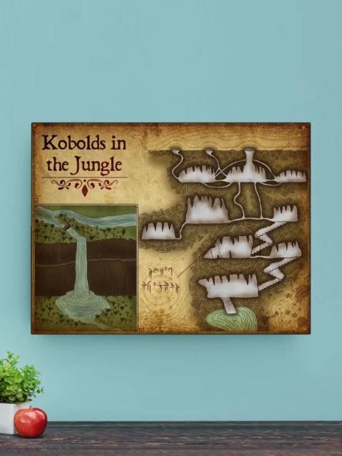 Dungeon masters running jungle hexcrawls recognize this map immediately as campaign infrastructure. Players who prep kobold encounters value Derek Ruiz’s cartographic precision from his Candlekeep Mysteries work. This kobolds in the jungle no labels fantasy battle map canvas print particularly serves DMs who reference maps mid-session.