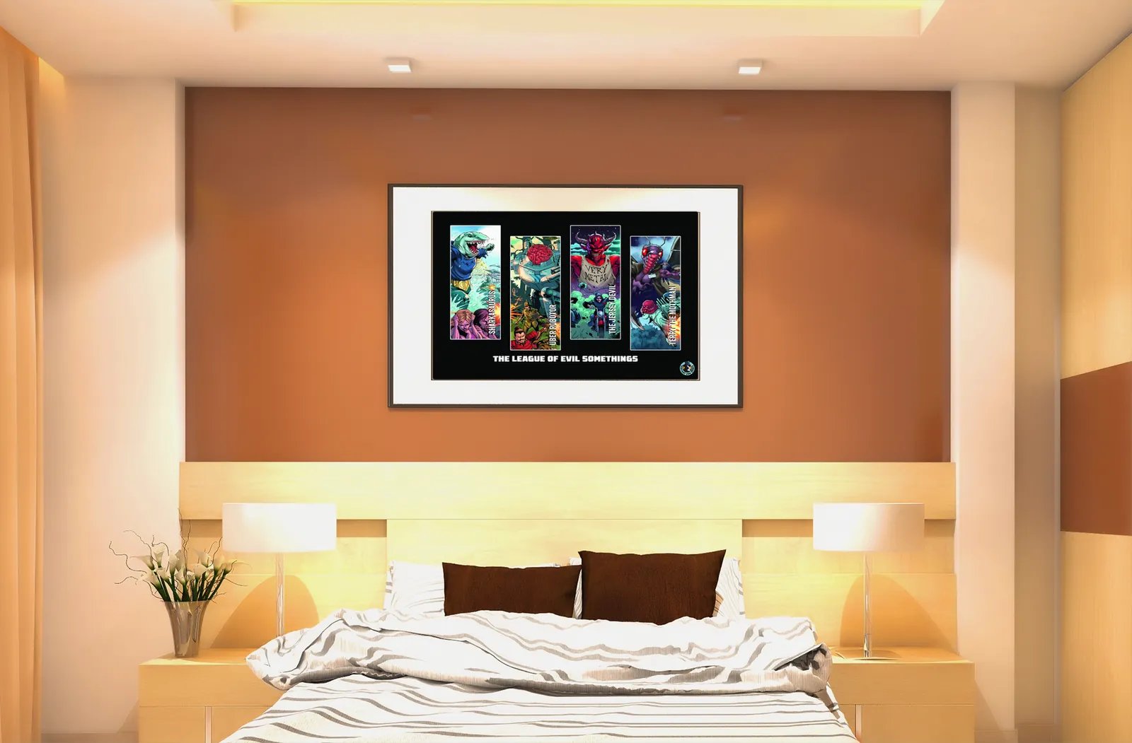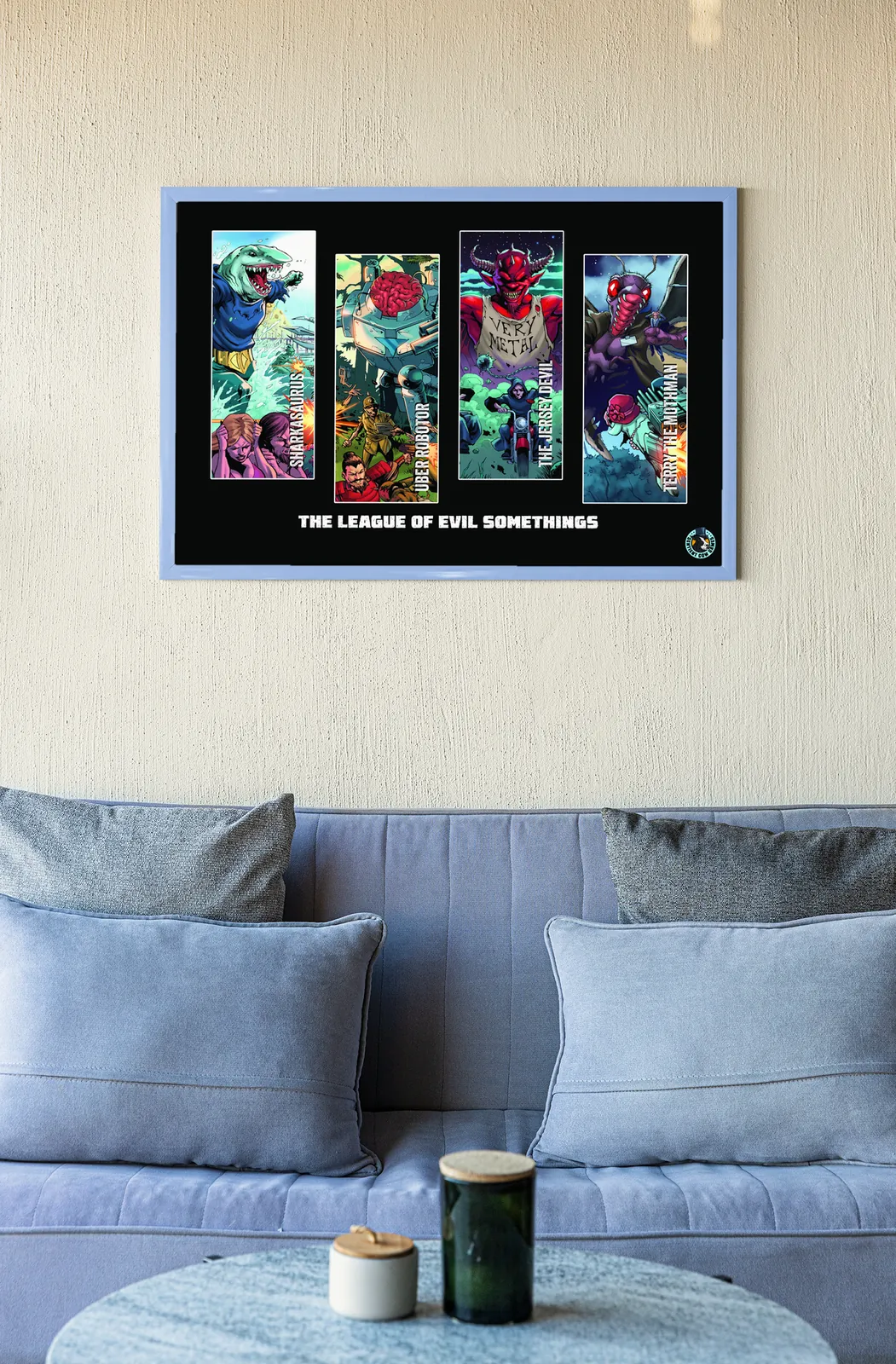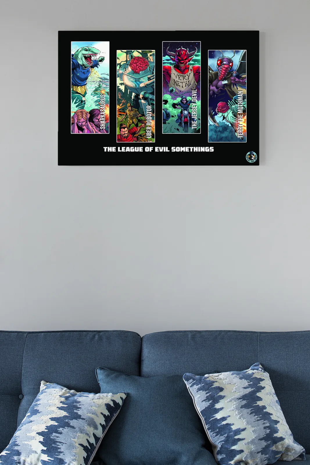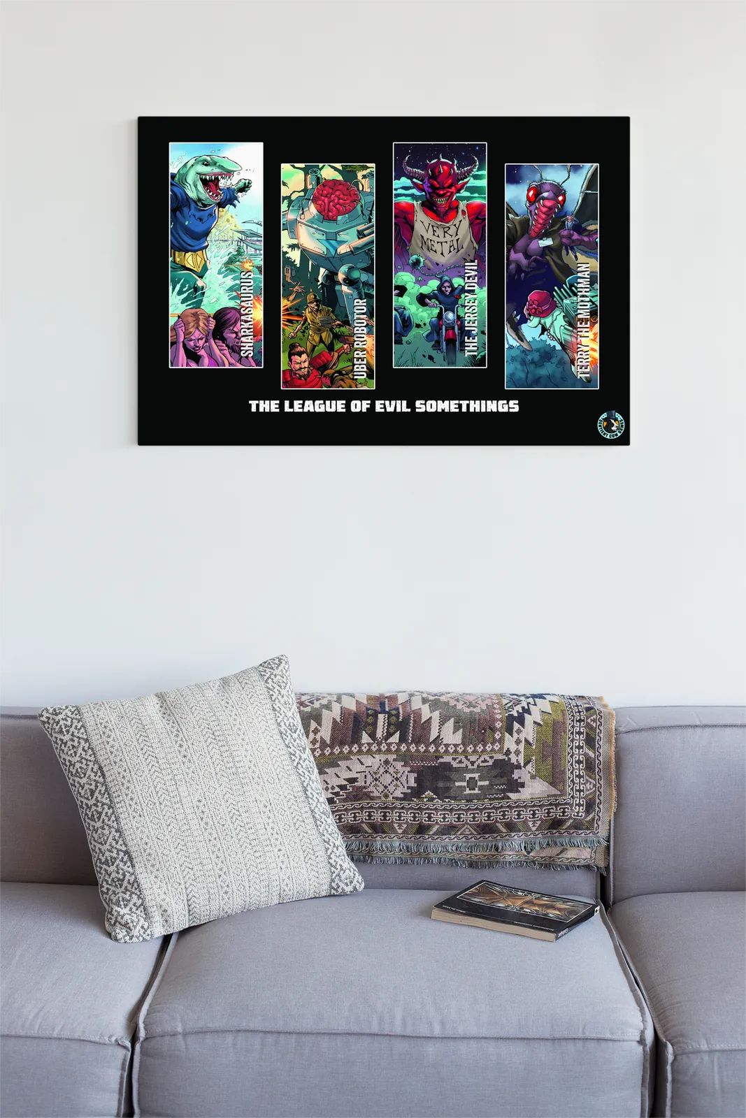 League Of Evil Somethings is a villain ensemble art on canvas showcasing iconic antagonists, created for collectors, gamers, and dramatic wall display.