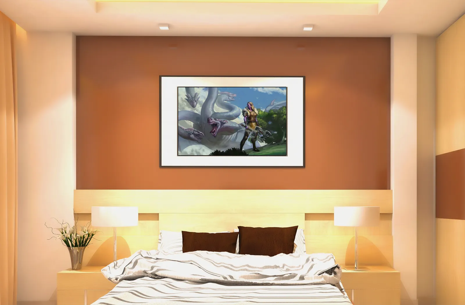 Therefore, collectors drawn to mythic confrontations, gamers or tabletop fans building immersive environments, and anyone enhancing a wall display in a game room, studio, or creative space will appreciate how this artwork adds tension, scale, and story-driven impact.