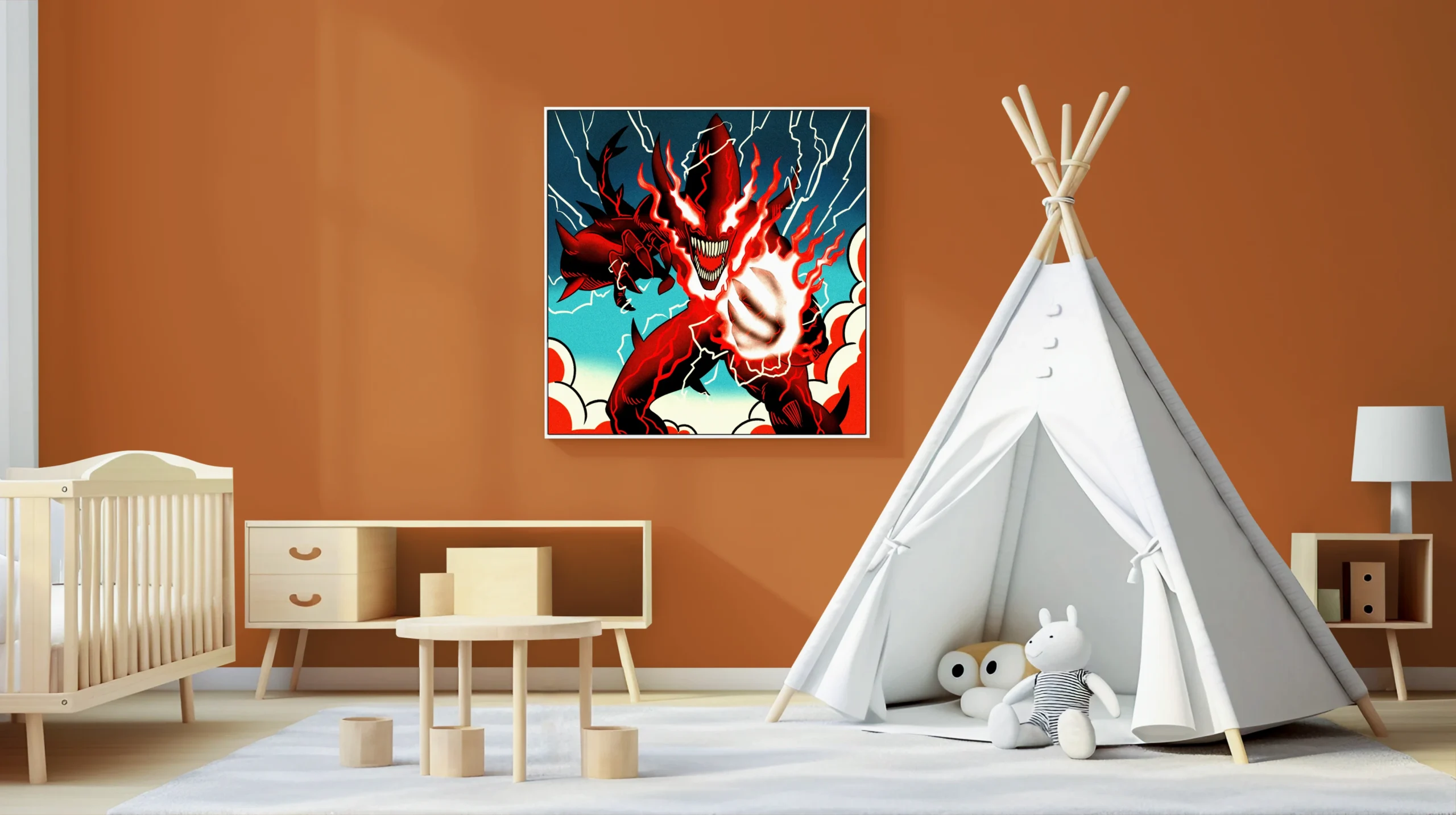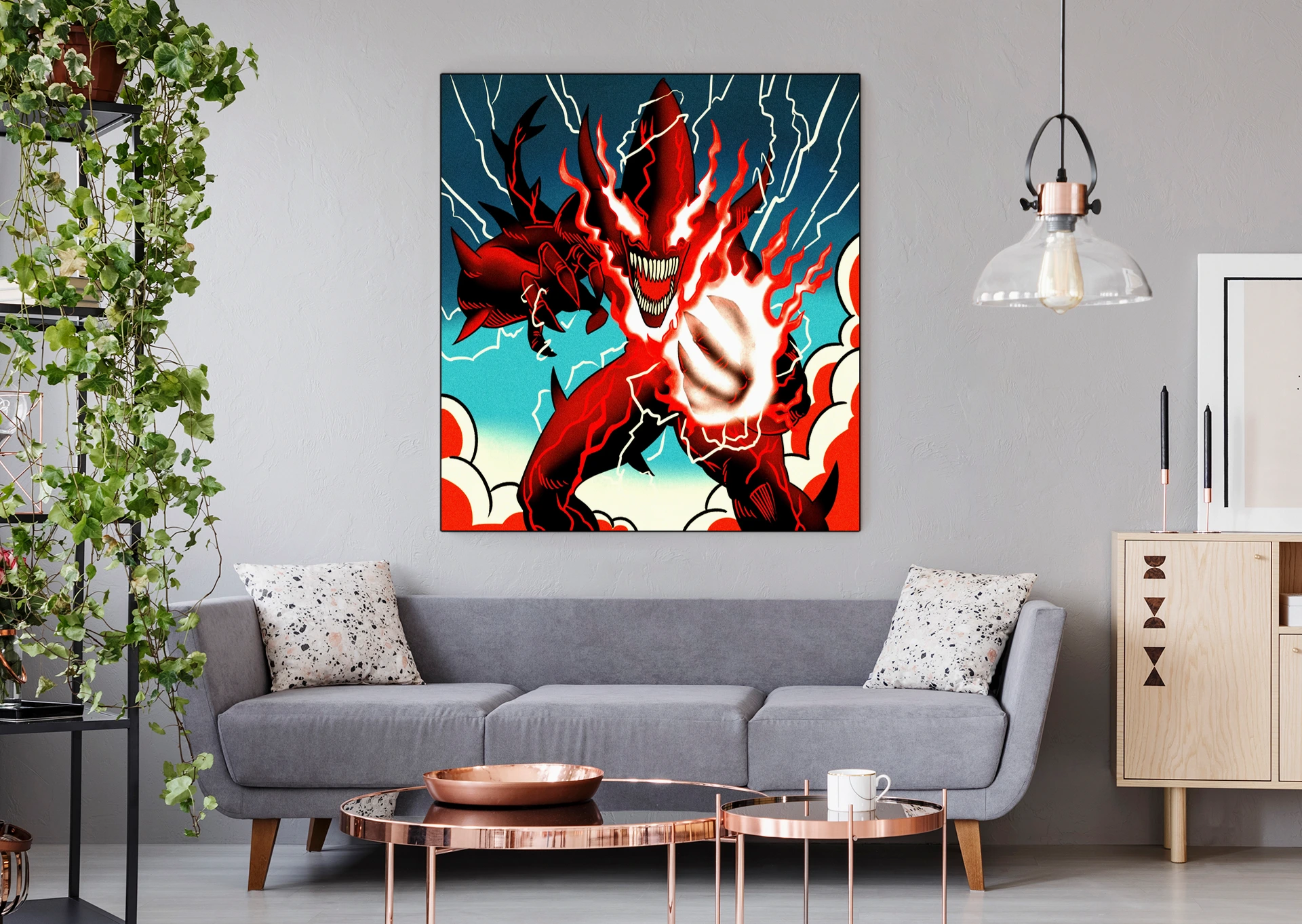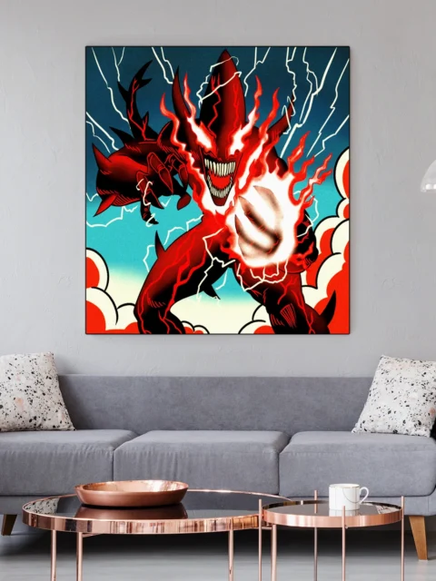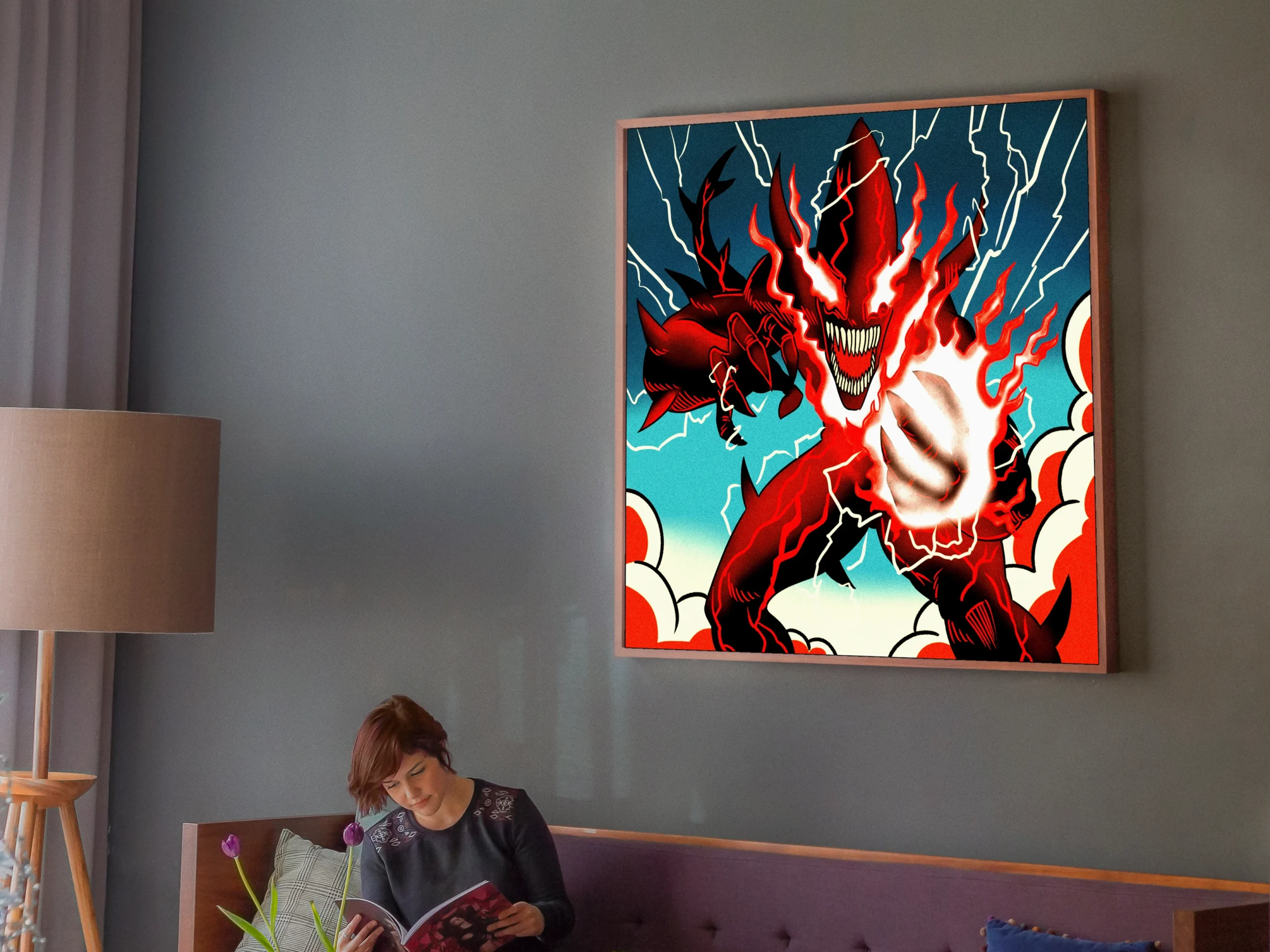 The aggressive composition suits game rooms where bold fantasy art sets the tone. Additionally, the graphic novel aesthetic pairs well with comic book collections.