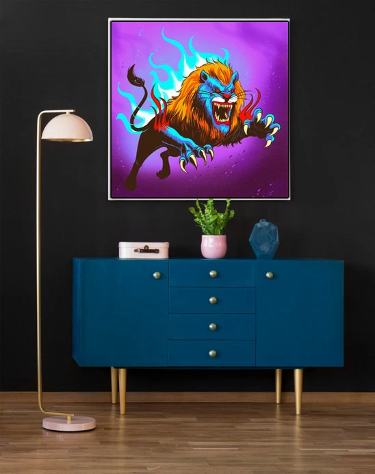 On the wall, the graphic novel linework holds clarity at scale without losing edge definition. This print appeals to Ward TCG collectors and creature art enthusiasts who favor high-saturation fantasy illustration. The manticore art trading card art canvas print delivers Vainer’s bold style in gallery-ready format.