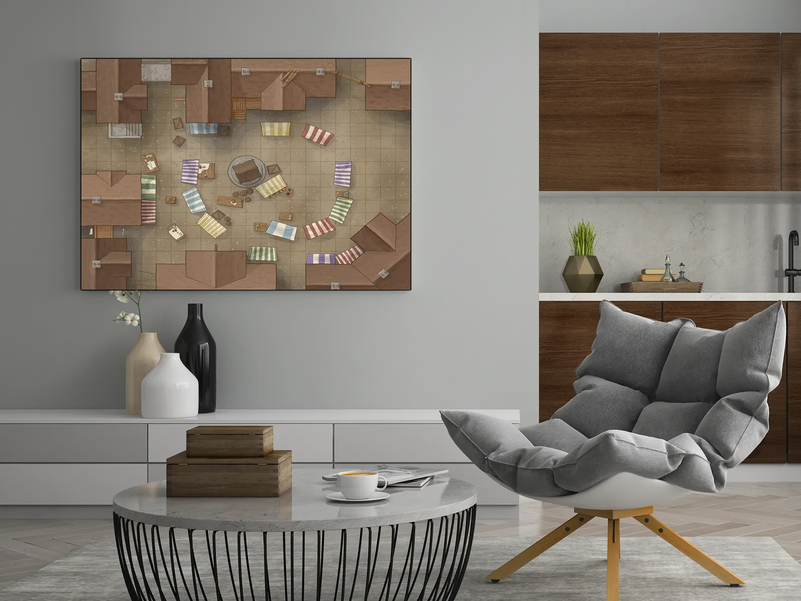 Finally, the Market Square Fantasy Map functions both as a practical tabletop reference and as decorative fantasy wall art. Above all, it supports immersive urban storytelling while offering a clean, readable design suitable for long-term display.