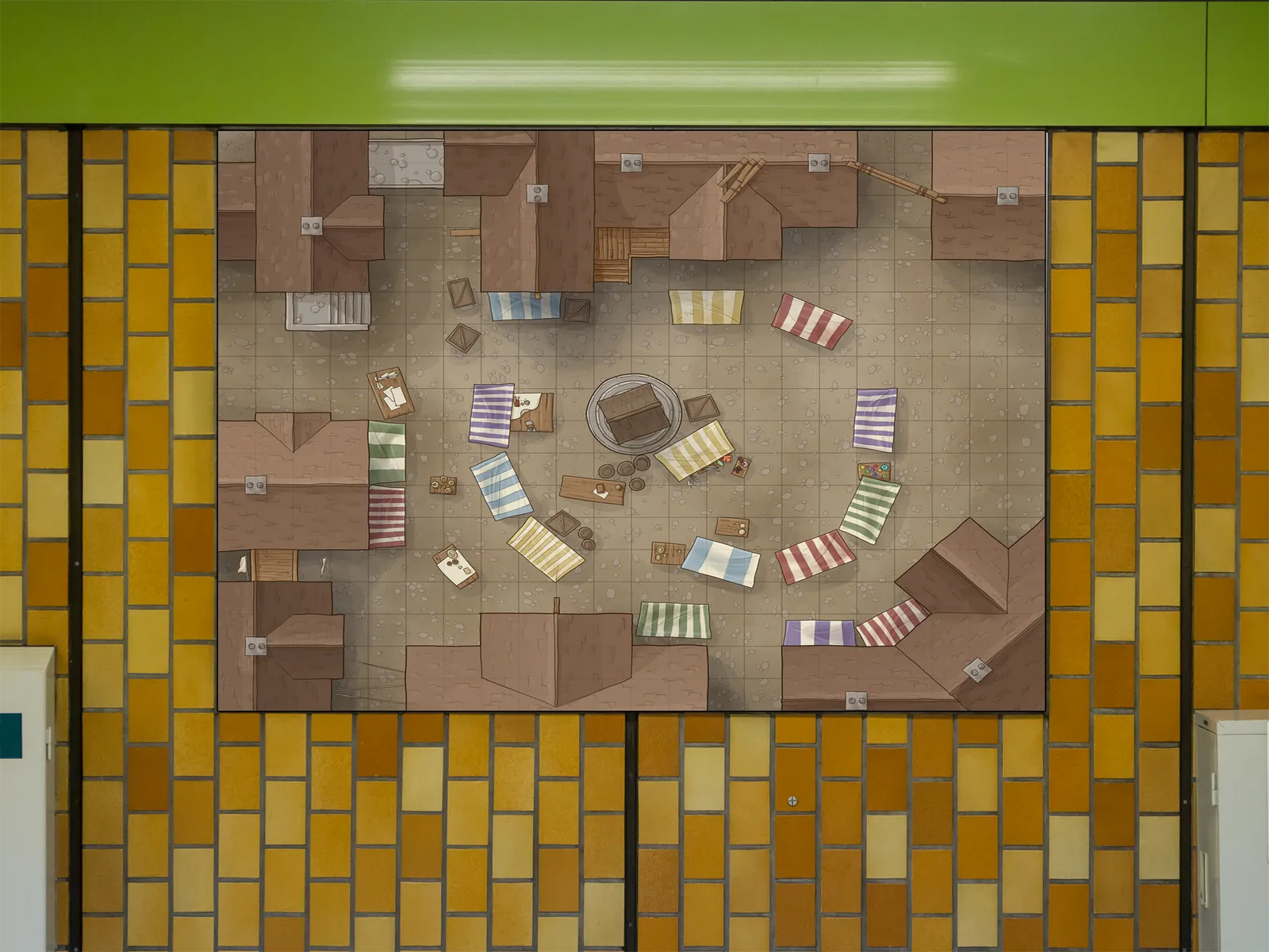 Moreover, the circular stall layout and clear sightlines make this market square especially effective for roleplay encounters, investigations, and sudden combat scenarios. The balanced spacing allows Dungeon Masters to track movement easily while still providing visual detail for storytelling. Consequently, the map works well for ambushes, negotiations, thefts, and public events.