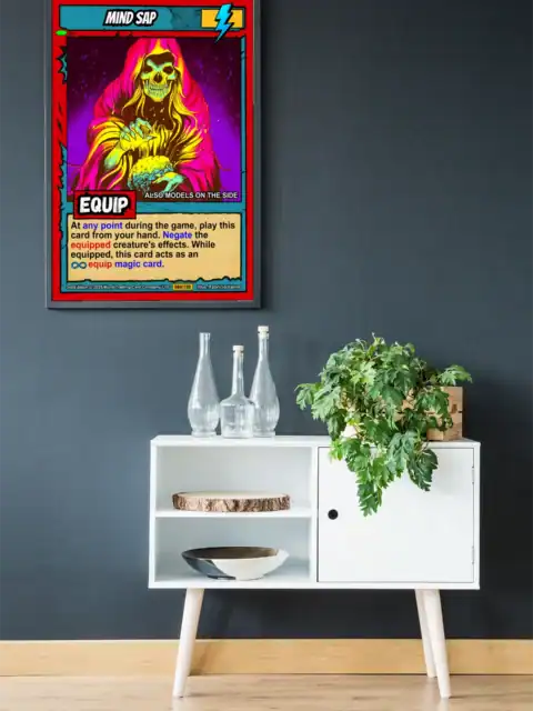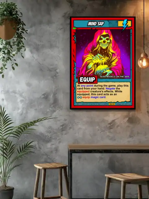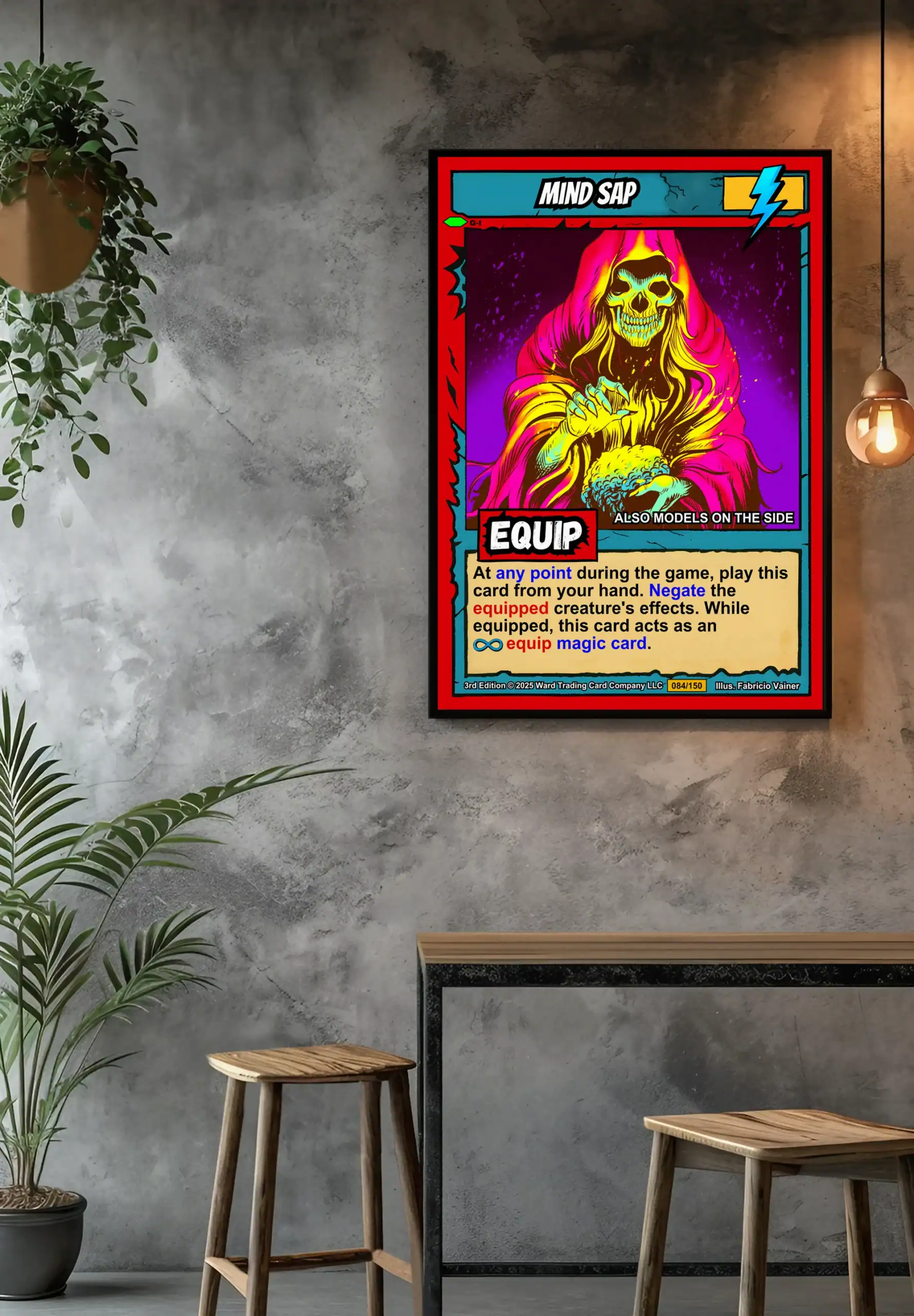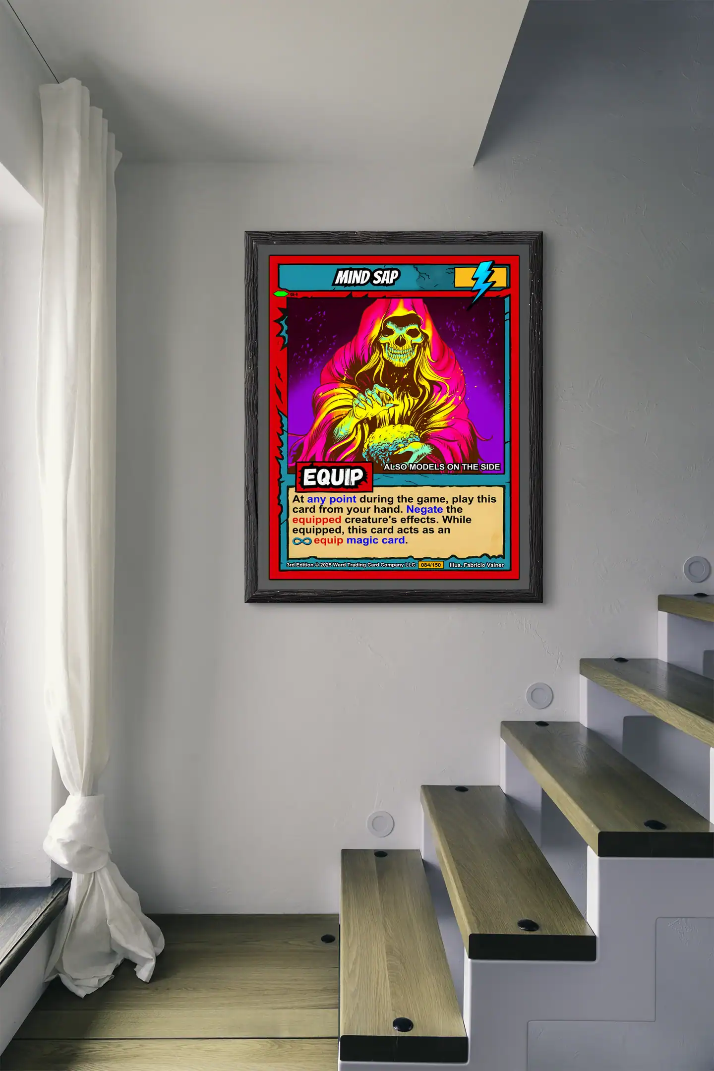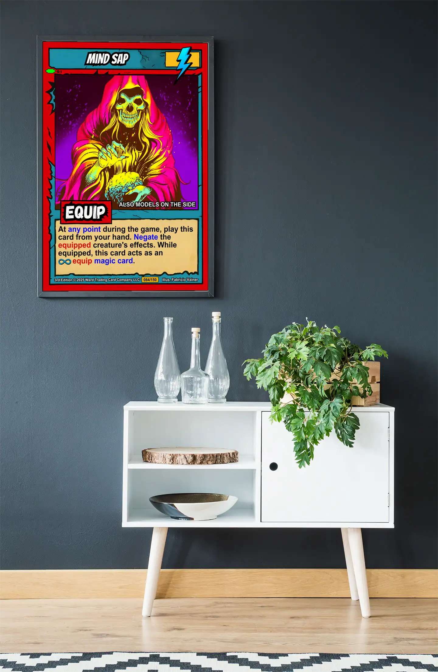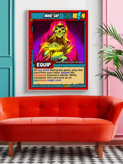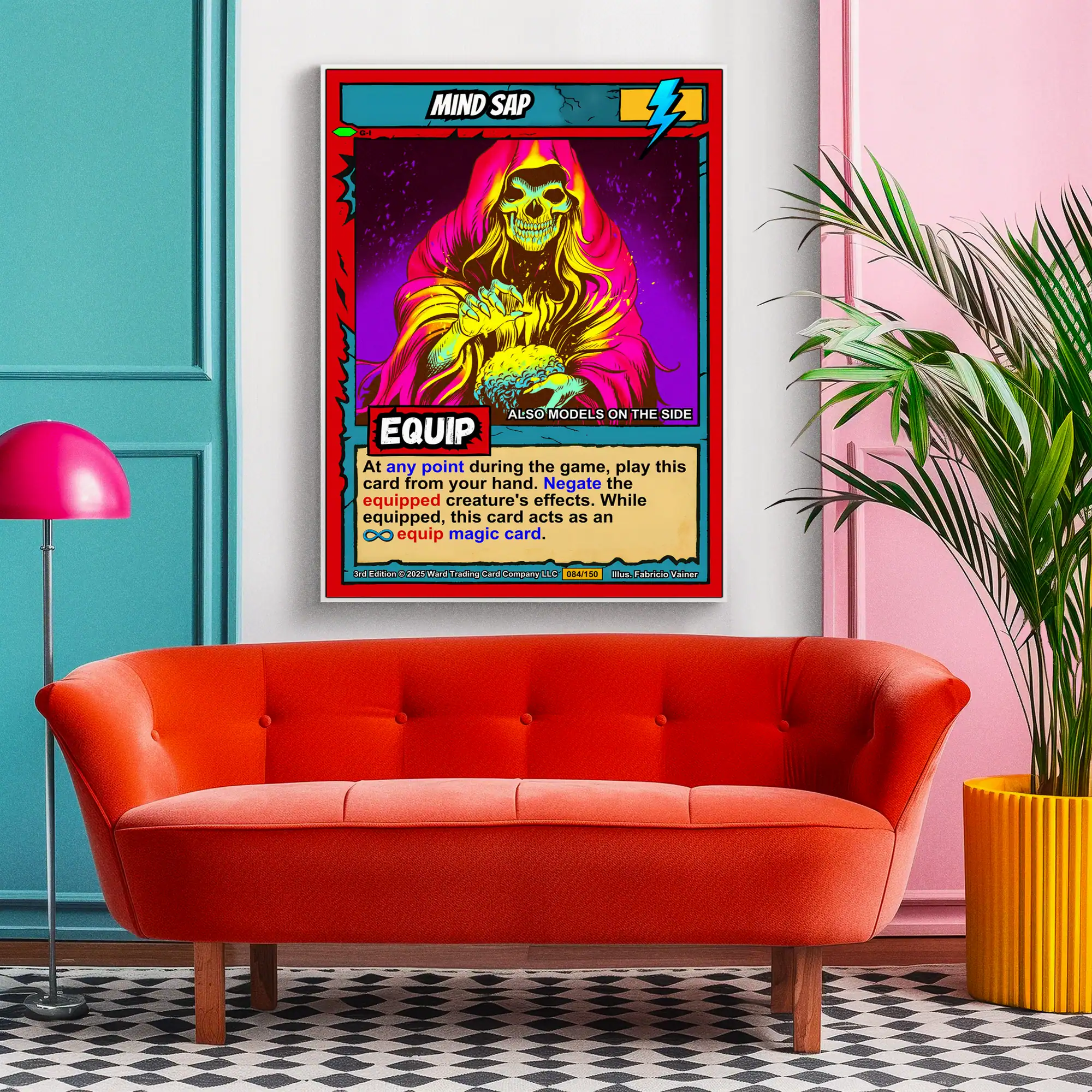 Owning this declares your appreciation for horror fantasy that pushes boundaries. TCG collectors recognize Fabricio Vainer’s bold approach to macabre subjects immediately. Particularly, this mind sap trading card canvas print rewards those who embrace darker aesthetics.