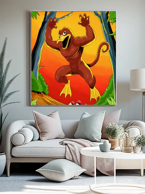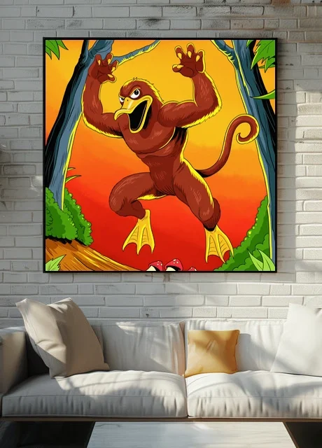 Display in a game room alongside other creature art or vintage animation posters where the bold saturation holds attention. Additionally, the piece works well in creative studios where absurdist character design sparks conversation and inspiration.