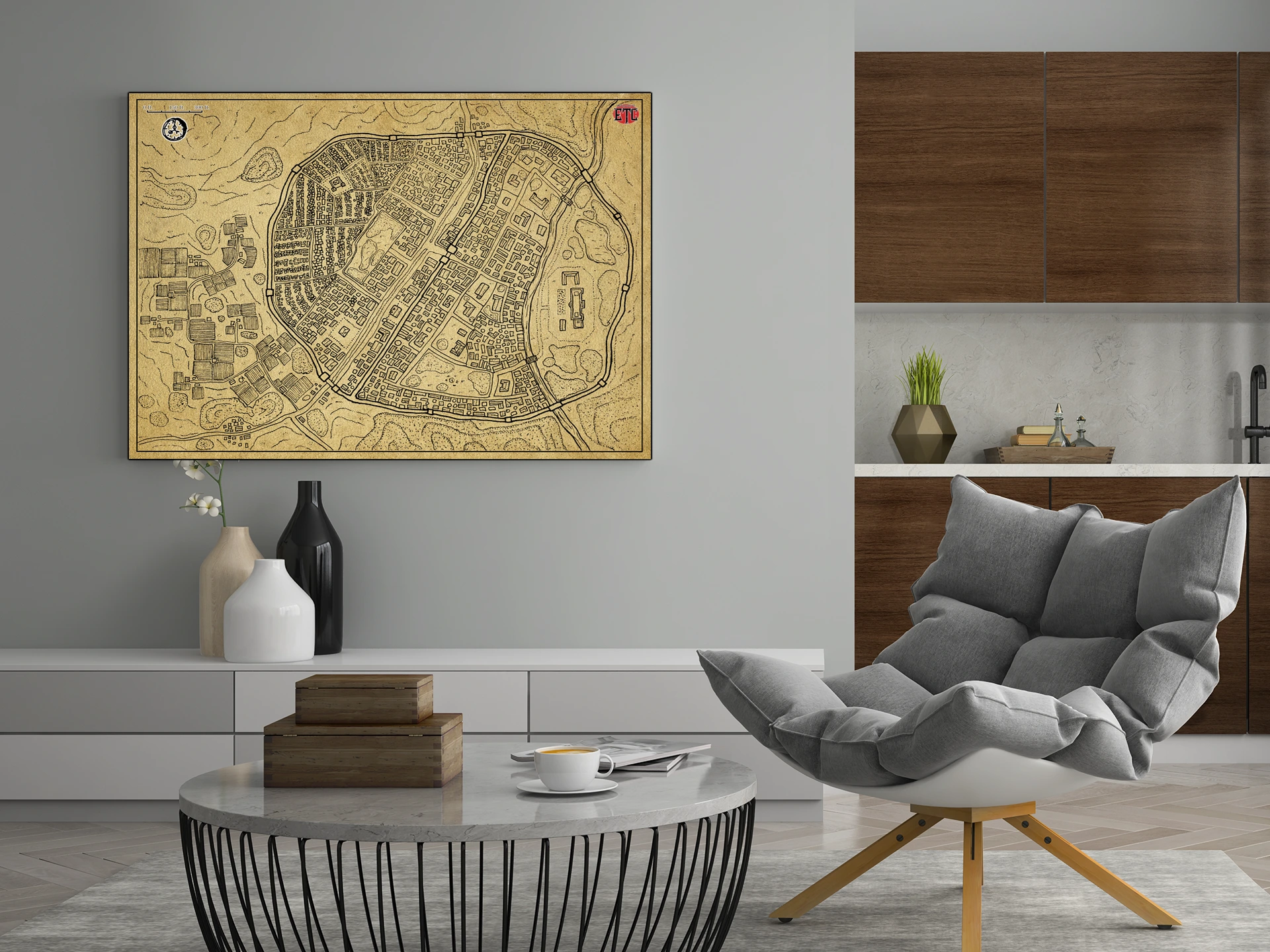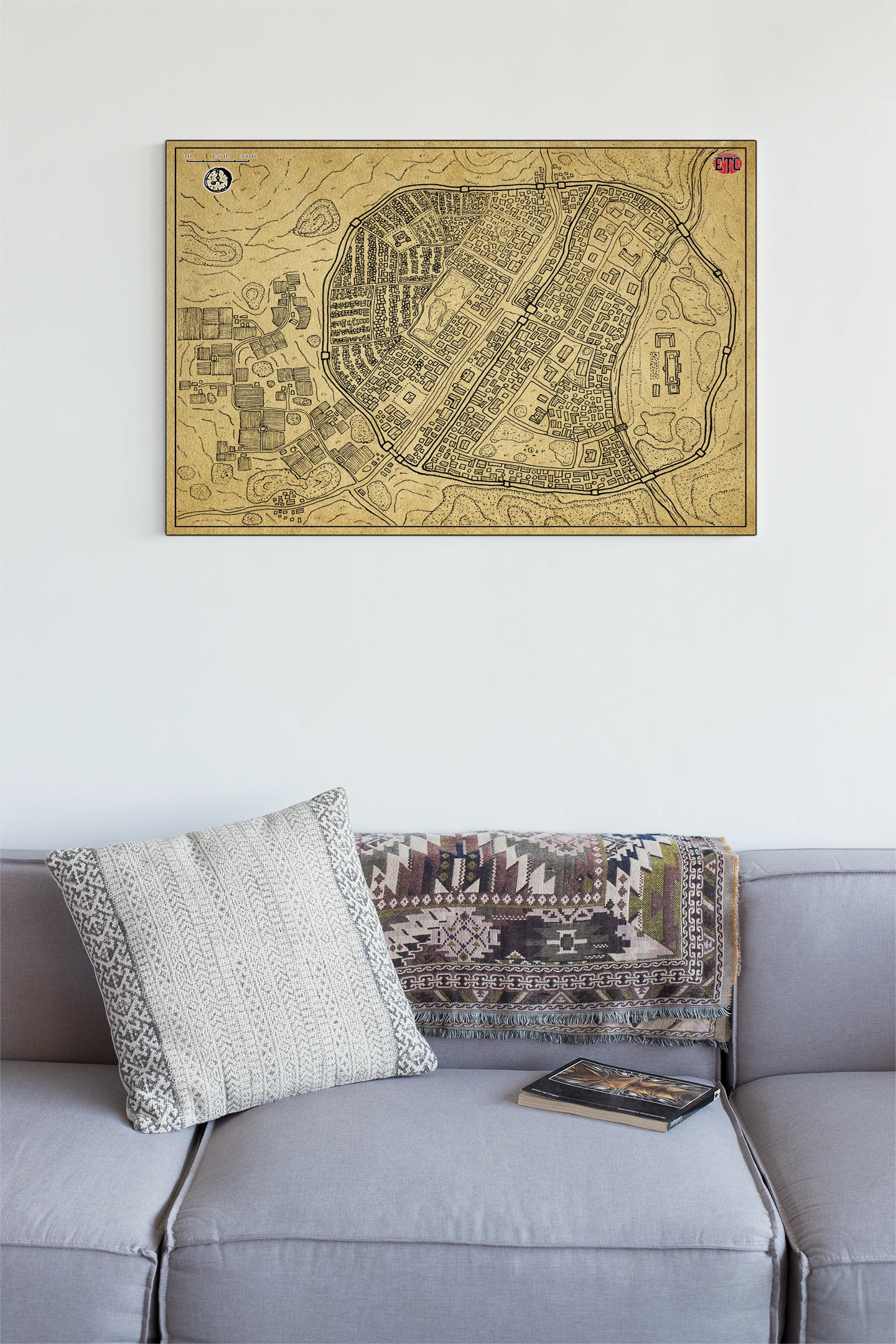 Dungeon masters who prep city encounters recognize district density as narrative shorthand. Players who value cartographic detail over decorative abstraction claim wall space accordingly. This moonspear parchment no labels fantasy battle map canvas print particularly serves campaigns where urban layout drives the story.