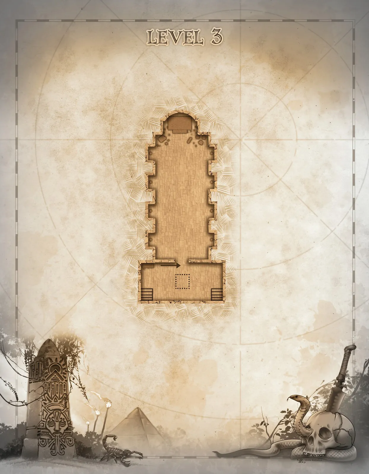 Mummy Bride Map Lvl 3 isolates the final tomb chamber where ritual purpose replaces exploration and escape collapses into confrontation. Moreover, the layout signals maximum threat through its narrow approach and sealed destination, implying a space built for final judgment rather than survival.