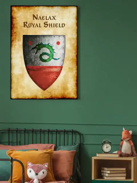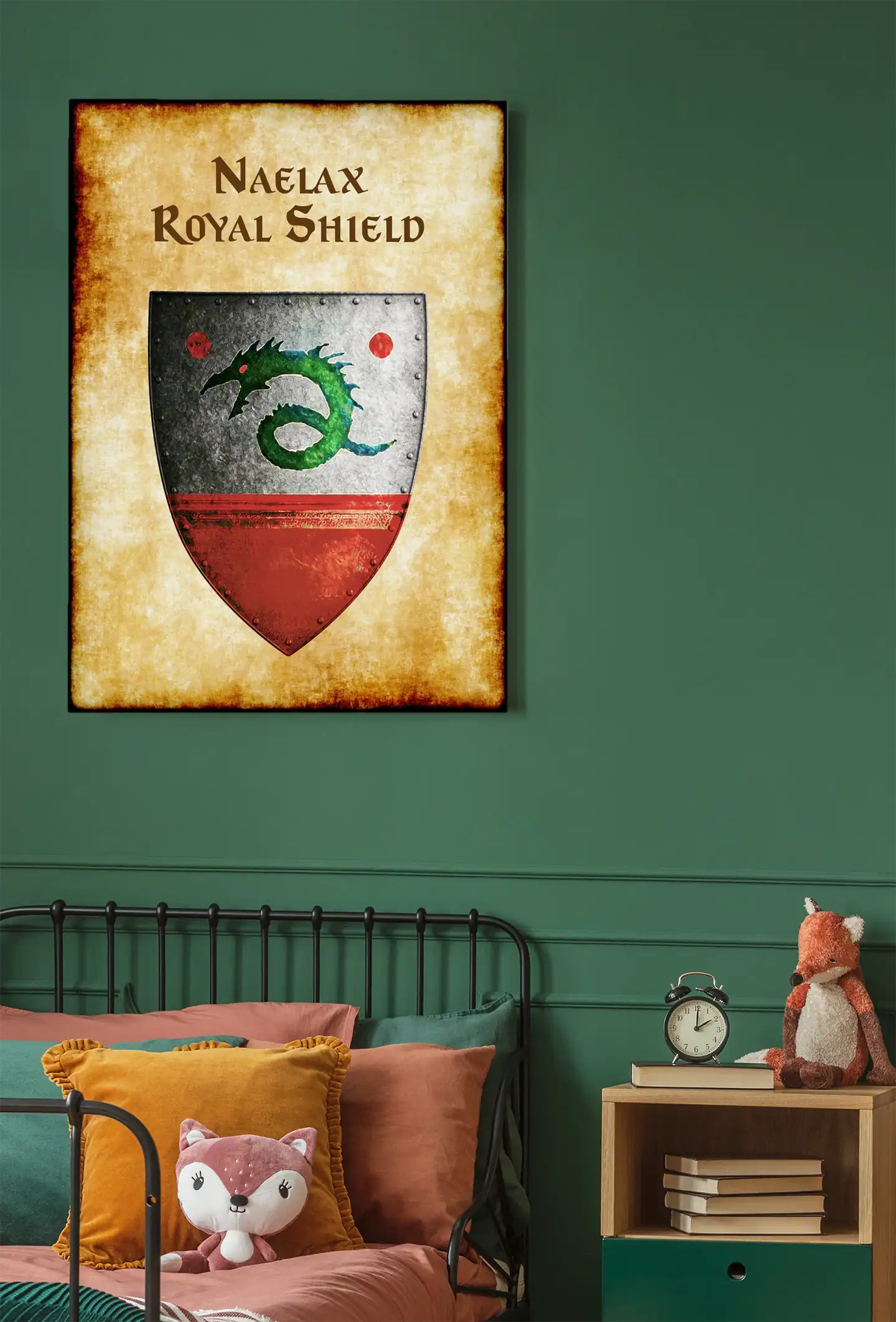 DMs running Great Kingdom campaigns need visual anchors for Aerdy nobility. Greyhawk collectors understand House Naelax’s role in the setting’s political intrigue. Particularly, this naelax royal shield Greyhawk heraldry canvas print grounds Overking storylines.