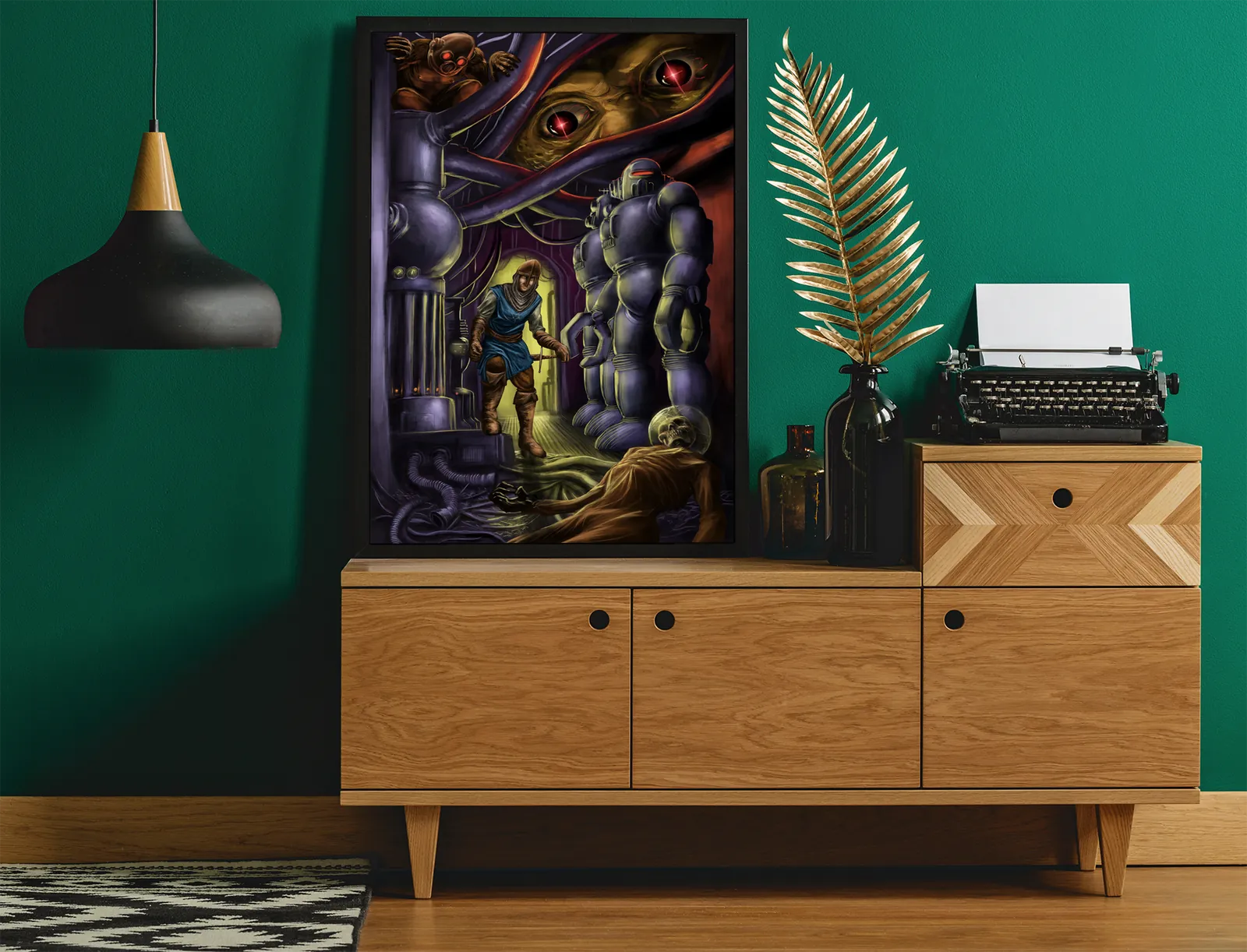 Moreover, collectors, gamers, and tabletop fans can intensify a wall in a studio, game room, or creative space by adding a visually unsettling image that fuels darker narratives and inspires high-stakes storytelling.