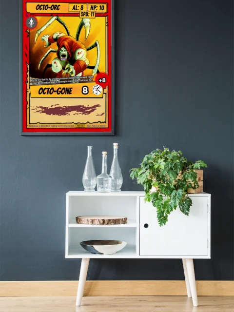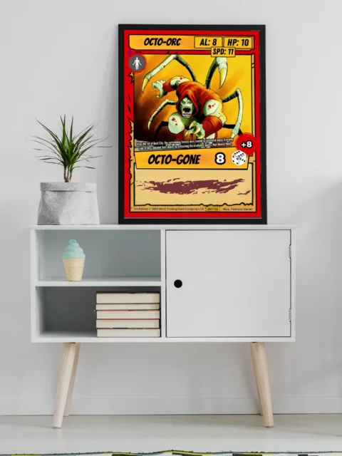 This piece works in game rooms where bold creature design anchors the wall. It also fits collections focused on mutant character art from Ward TCG.