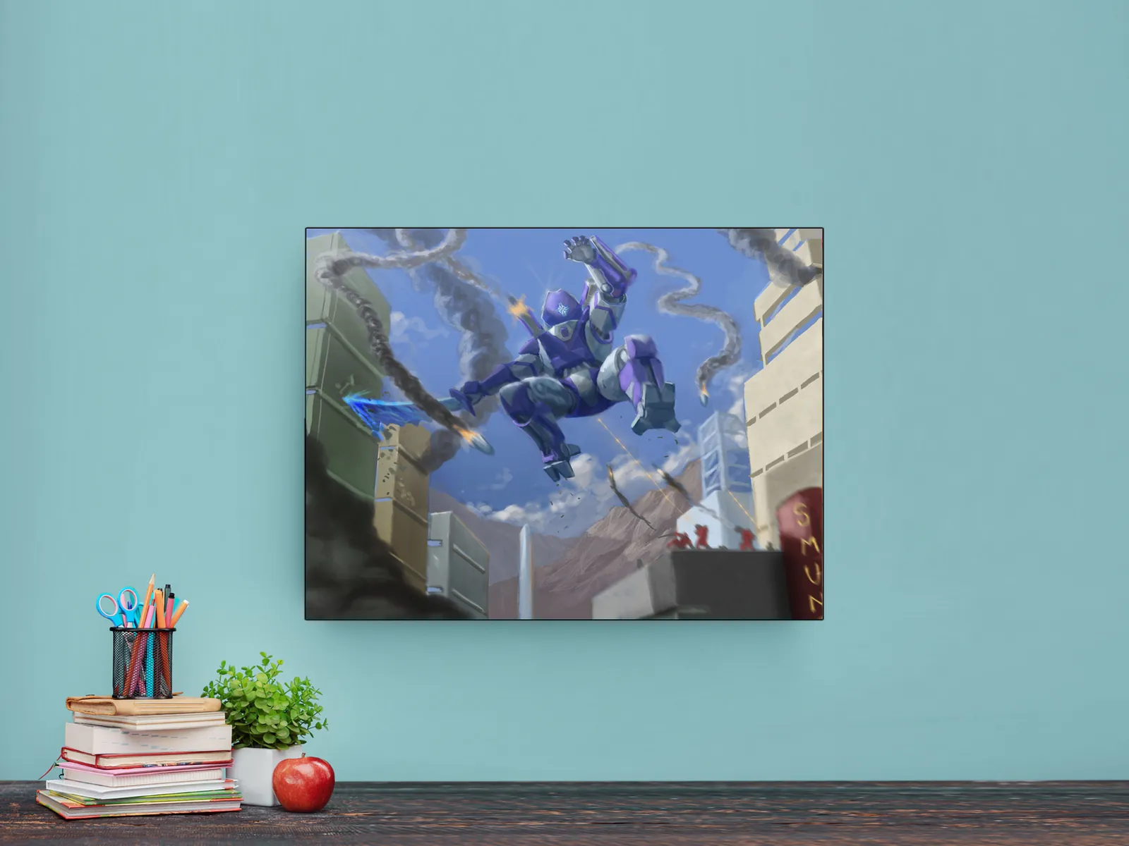 Above all, this piece speaks to collectors and tabletop fans who enjoy futuristic combat themes, fitting naturally into a game room, creative studio, or dedicated wall display where bold action imagery sets the atmosphere.