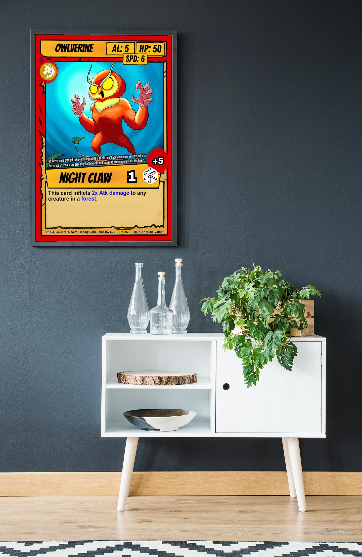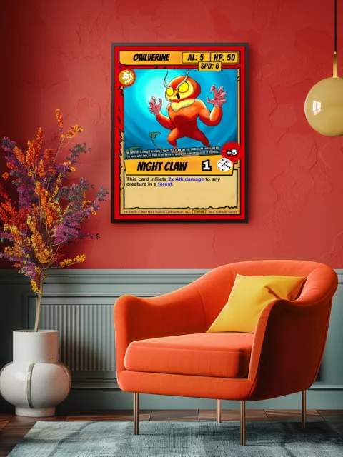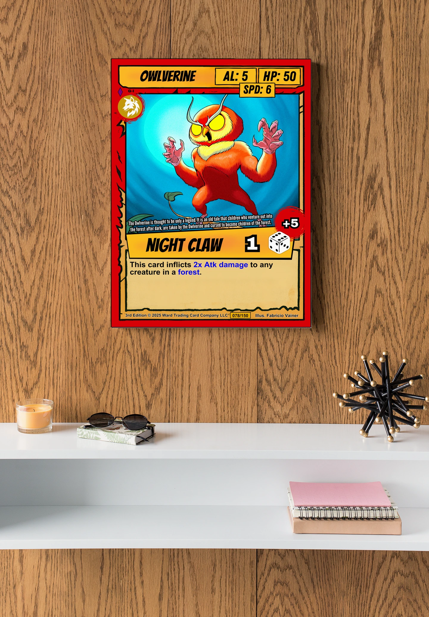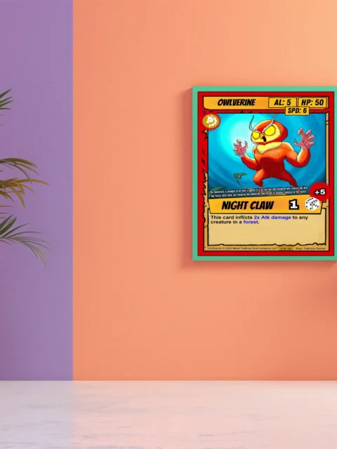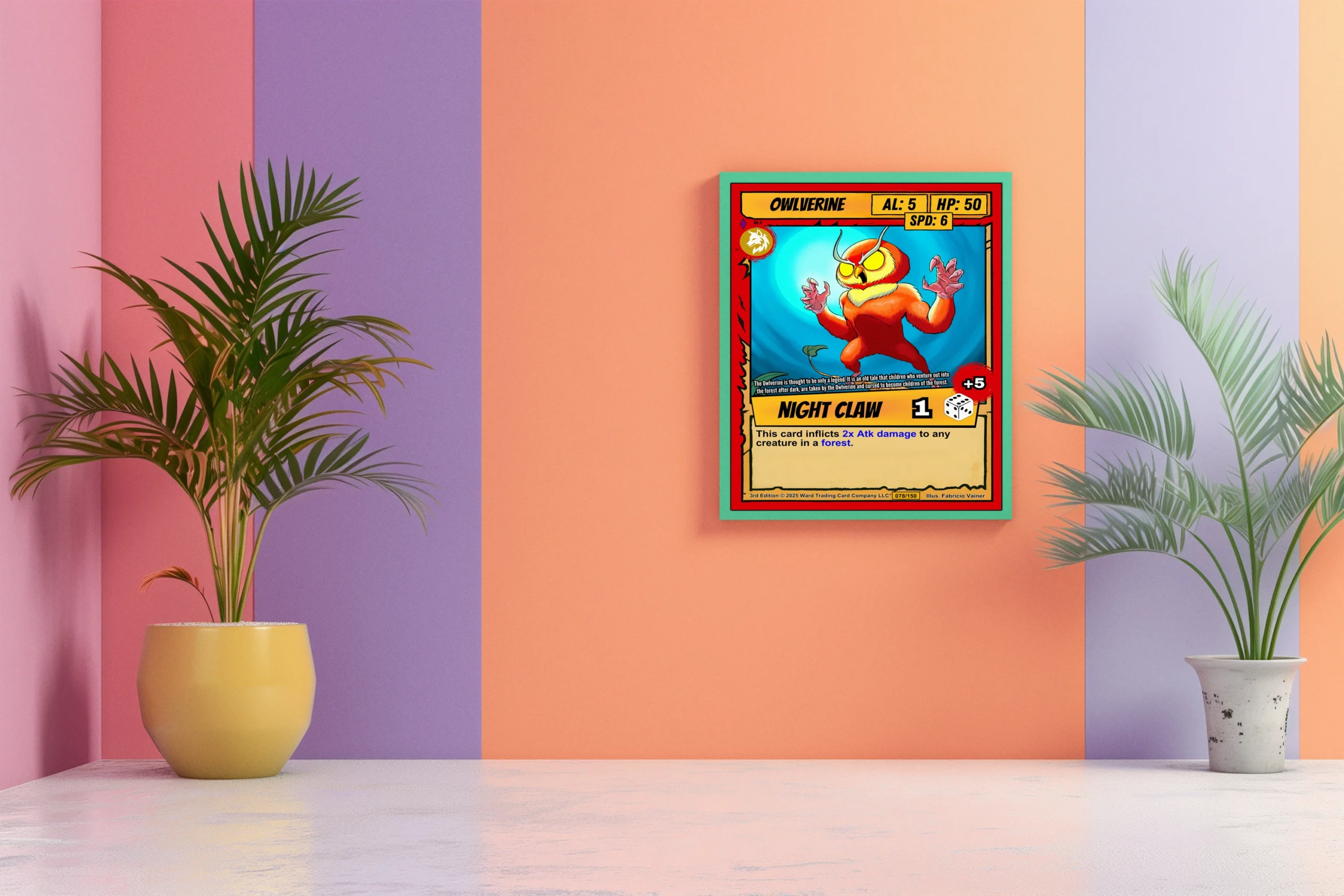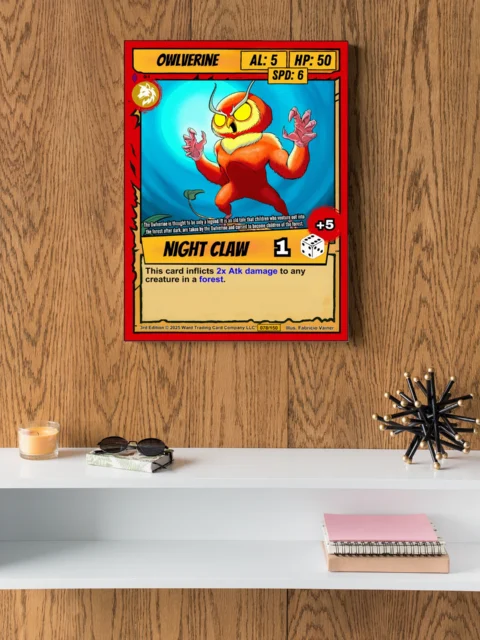 Dungeon masters recognize hybrid creatures that blur traditional monster categories perfectly. TCG collectors value Vainer’s comic-book artistry and Ward’s unique creature designs. This owlverine trading card canvas print particularly appeals to fantasy enthusiasts seeking memorable wall displays.