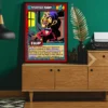 The playful composition works well in gaming rooms or collections displaying Ward TCG cat-themed cards. In particular, the warm orange and turquoise palette pairs with mid-century modern furniture.