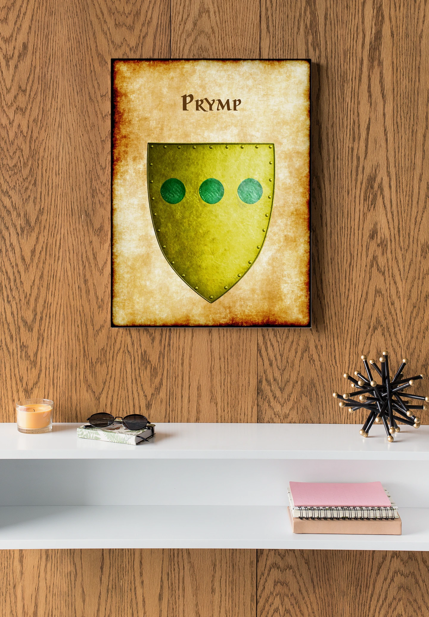 Home office displays benefit from this weathered heraldic authenticity during campaign preparation. Furthermore, the aged parchment aesthetic complements any fantasy workspace perfectly.