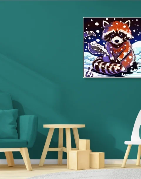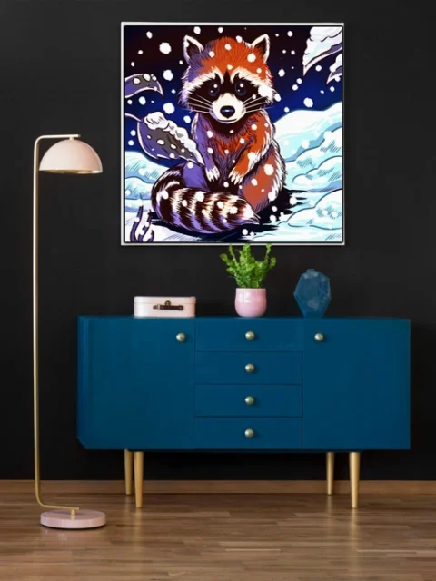 Hang this in a game room or creative studio where wintery woodland themes complement tabletop collections. Additionally, the limited palette pairs well with minimalist spaces that need a touch of illustrated warmth.