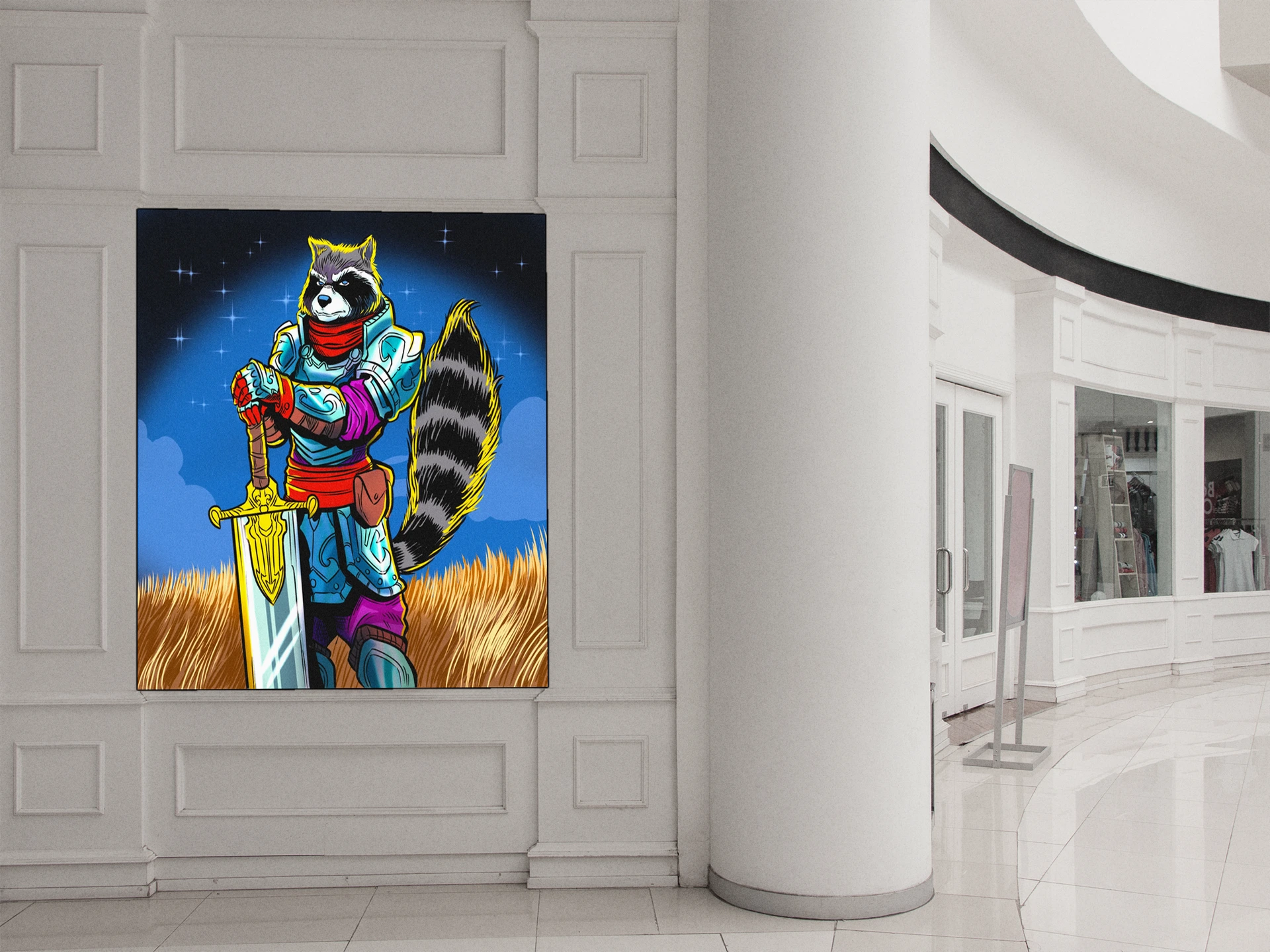 The heroic mood suits game rooms where Ward TCG collections deserve showcase treatment beyond binders. Additionally, creative studios benefit from the comic-influenced style and saturated color palette.