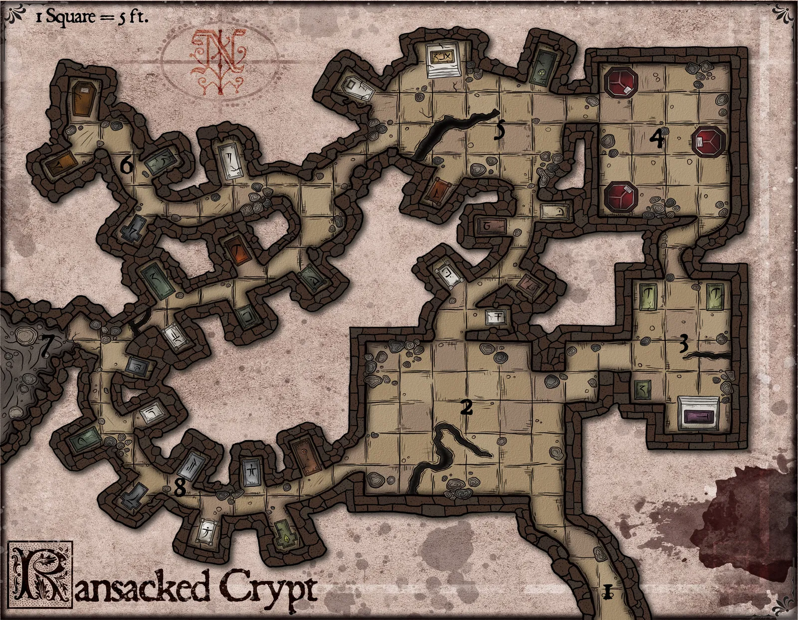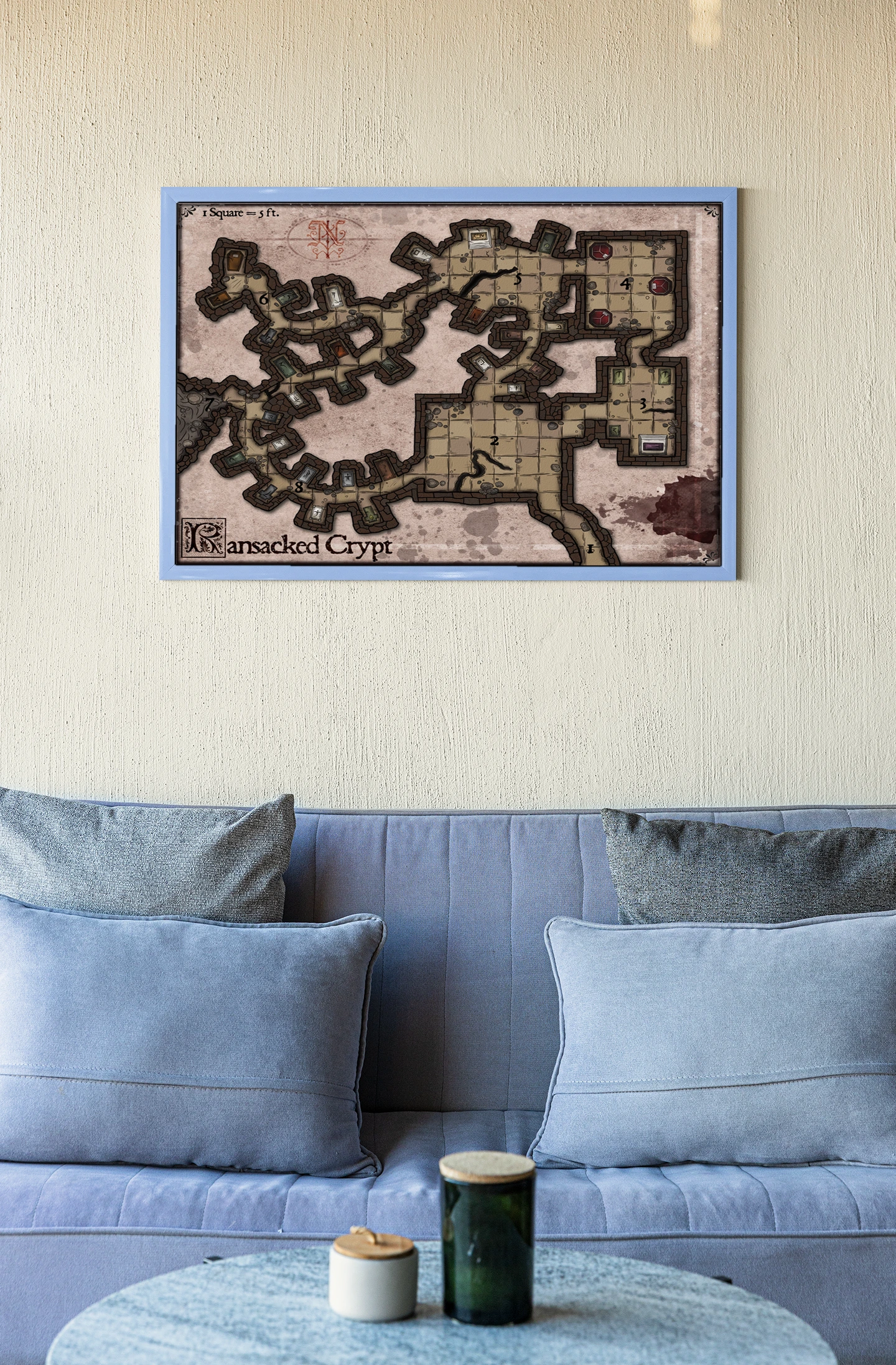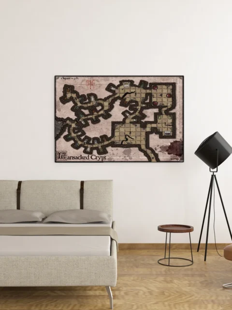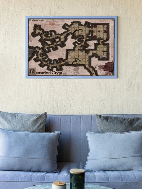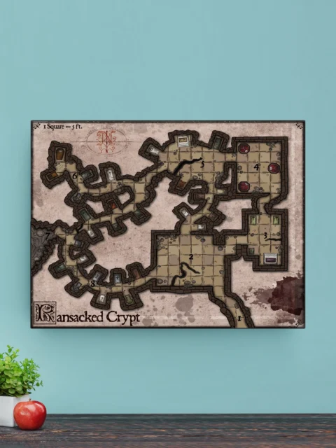 Dungeon masters running undead encounters recognize this layout immediately. The piece speaks to players who prep encounters and value functional art. This ransacked crypt fantasy battle map canvas print particularly suits those who run classic crypt delves.