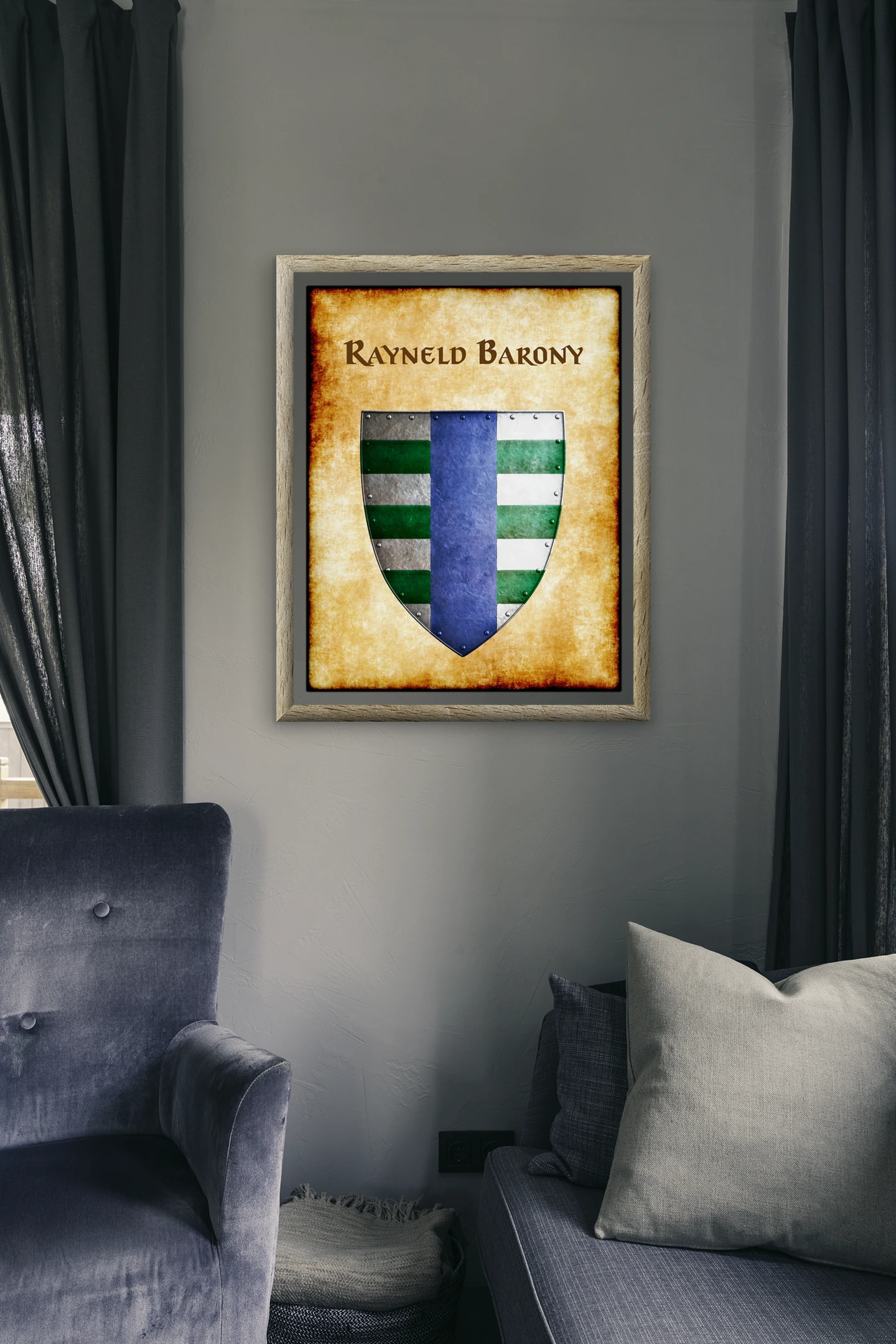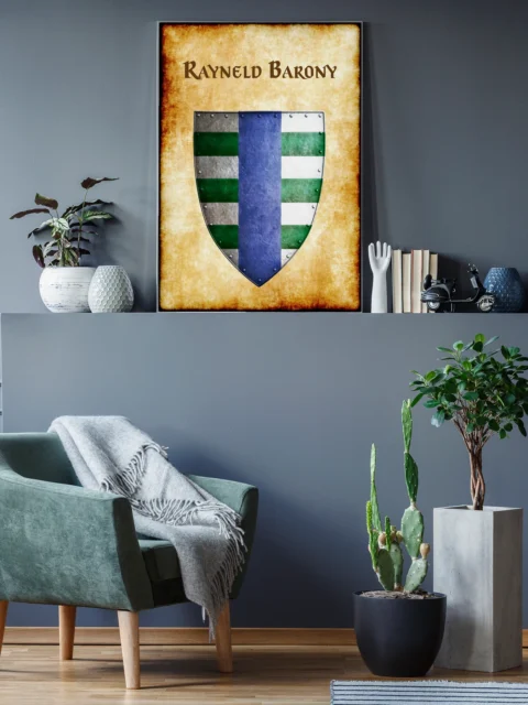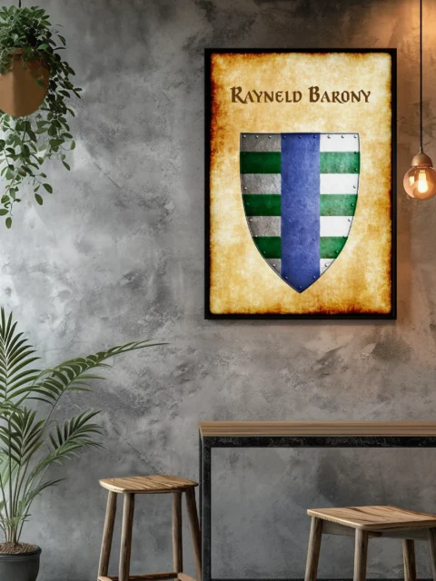 This device represents a noble house whose heraldry has circulated through Greyhawk campaigns for decades. OSR collectors cataloging Flanaess nobility now have the definitive heraldic reference for their walls.Flanaess nobility gets the heraldic documentation it deserves — Rayneld Barony is the evidence.