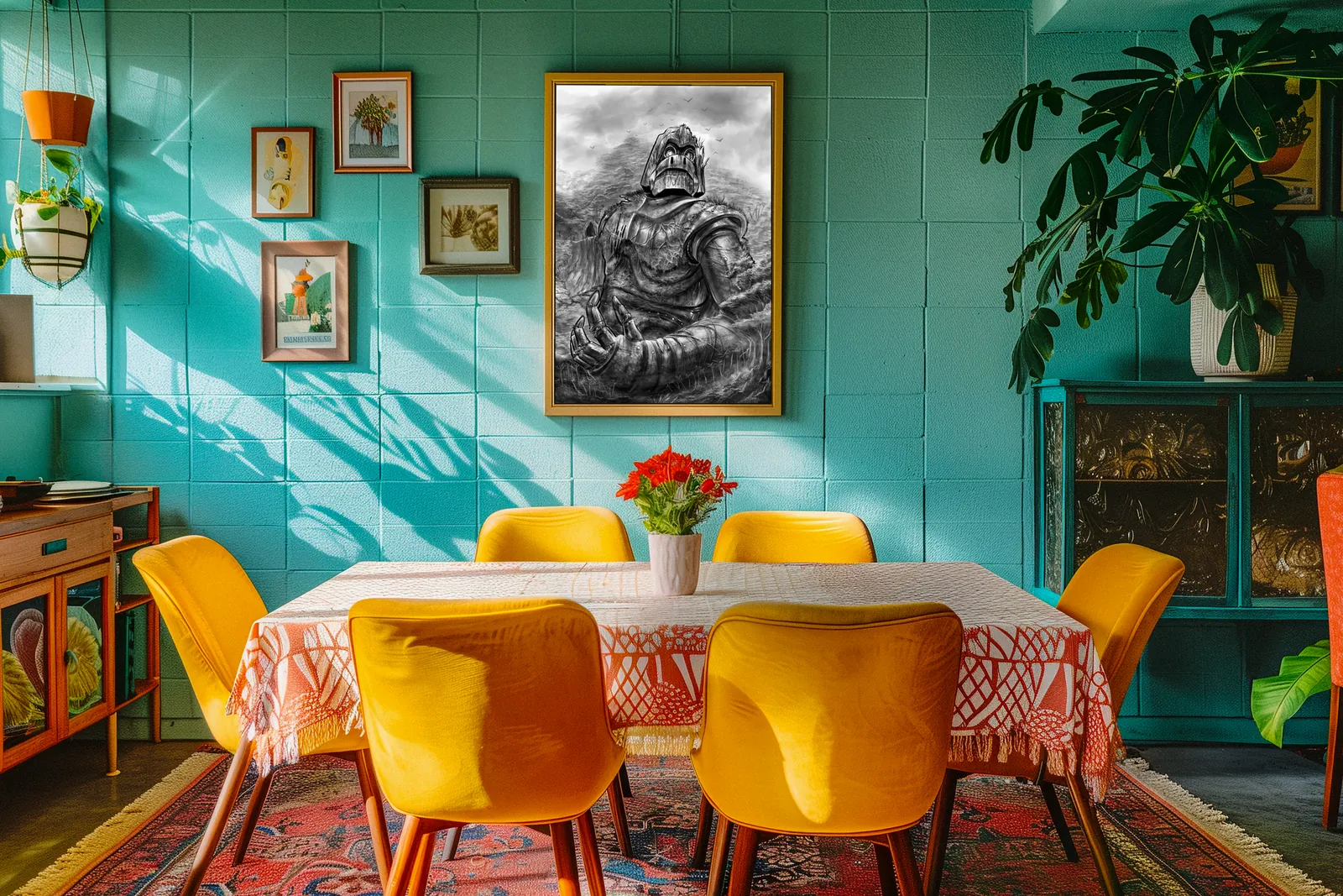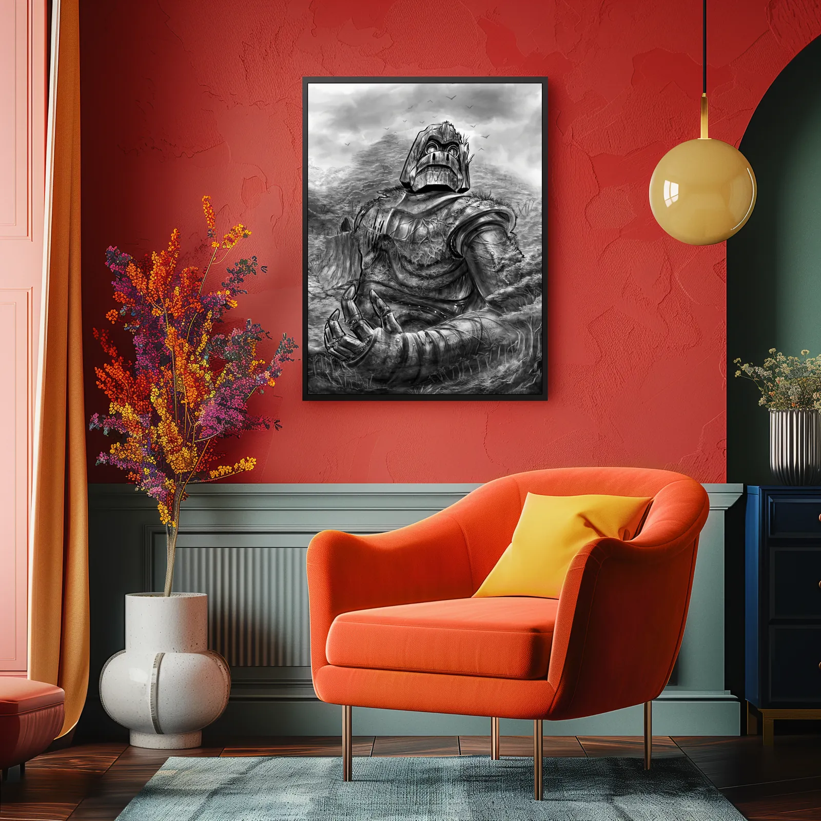 Moreover, collectors, gamers, and tabletop fans can deepen the atmosphere of a wall in a studio, game room, or creative space with an image that evokes lost battles, ancient machines, and mythic aftermaths.
