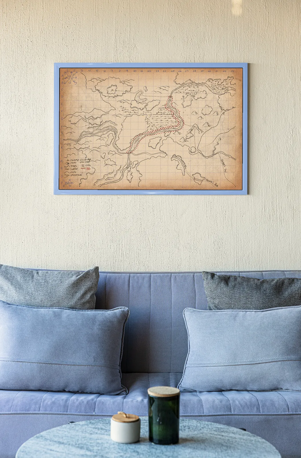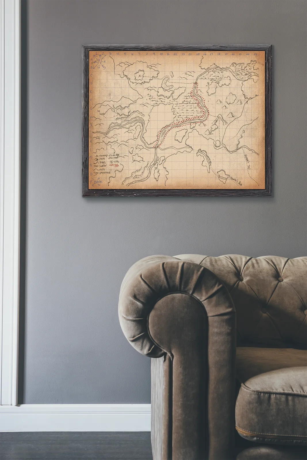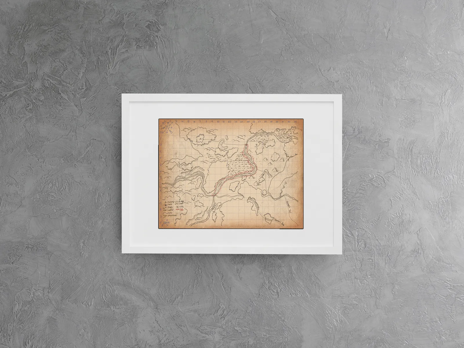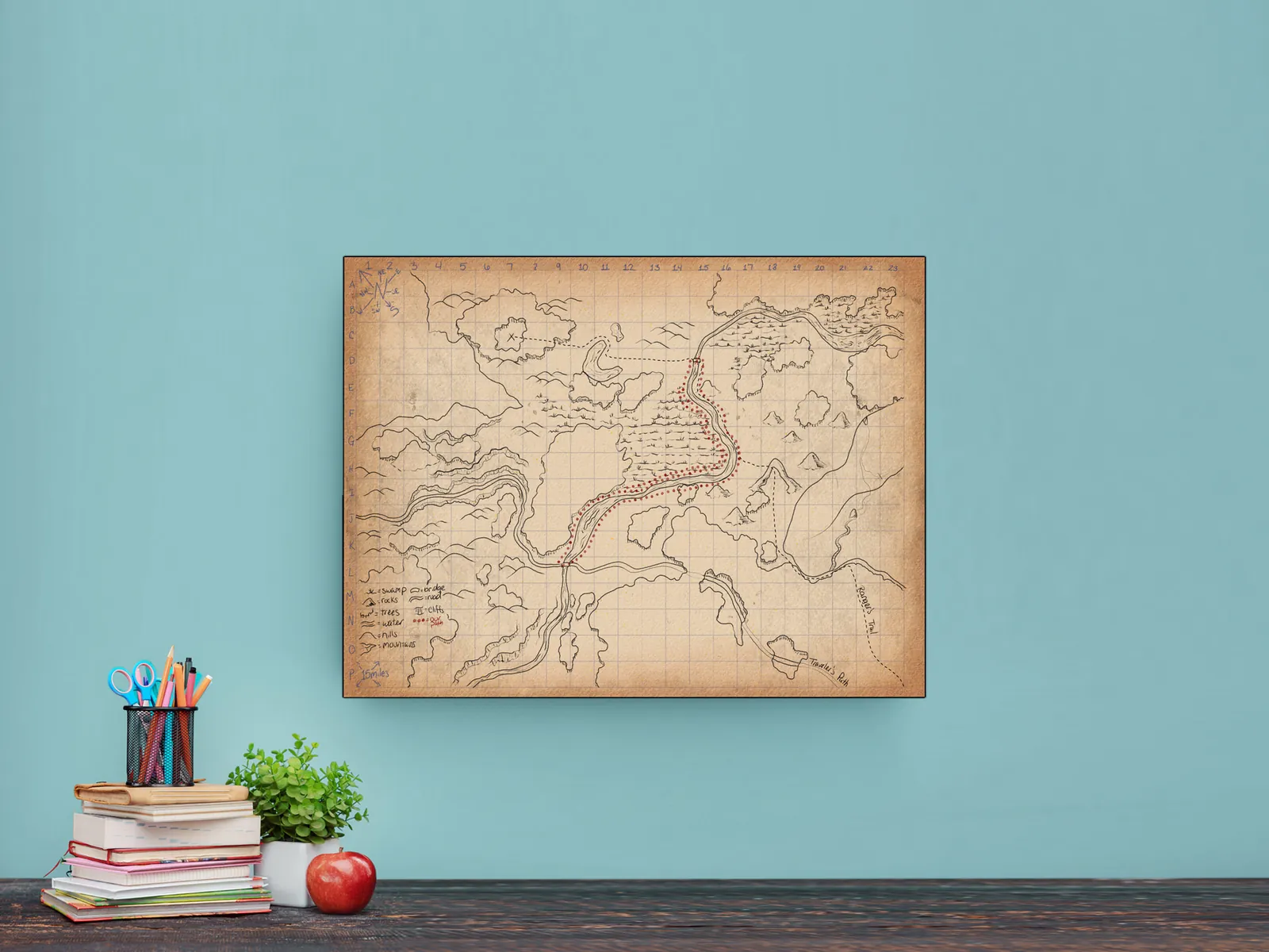 Moreover, collectors, gamers, and tabletop fans can use it on a wall in a studio, game room, or creative space for planning journeys, scouting danger, and tracking party movement.