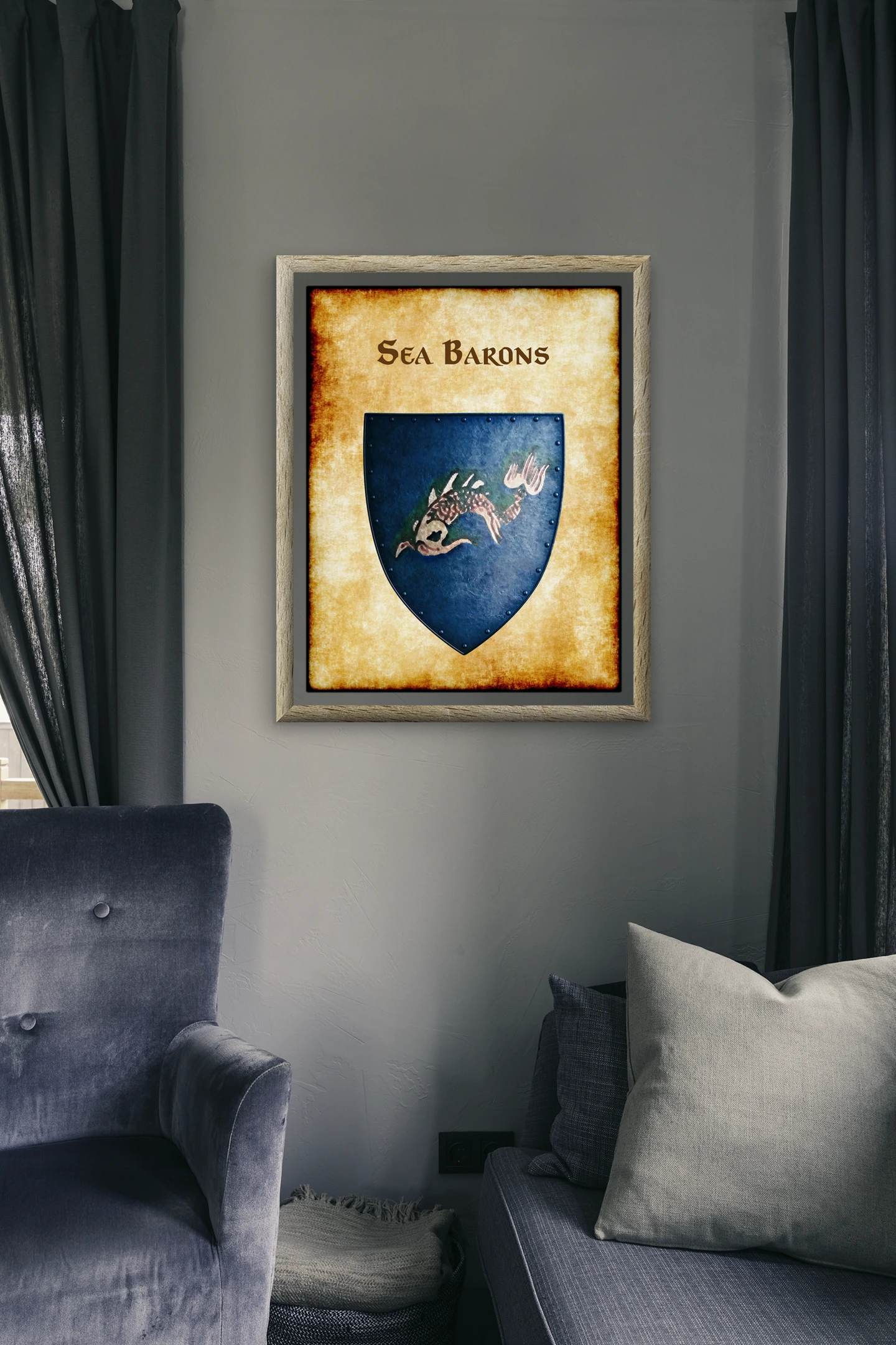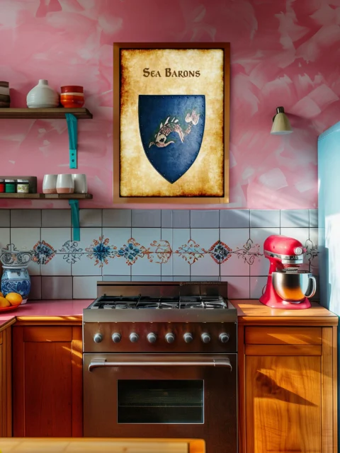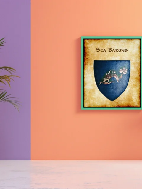 This device marks the faction that controlled eastern trade routes before the Greyhawk Wars. DMs running Spindrift Isles campaigns now have the official heraldry their sessions needed. This sea barons Greyhawk heraldry canvas print documents a naval power that shaped the Flanaess.