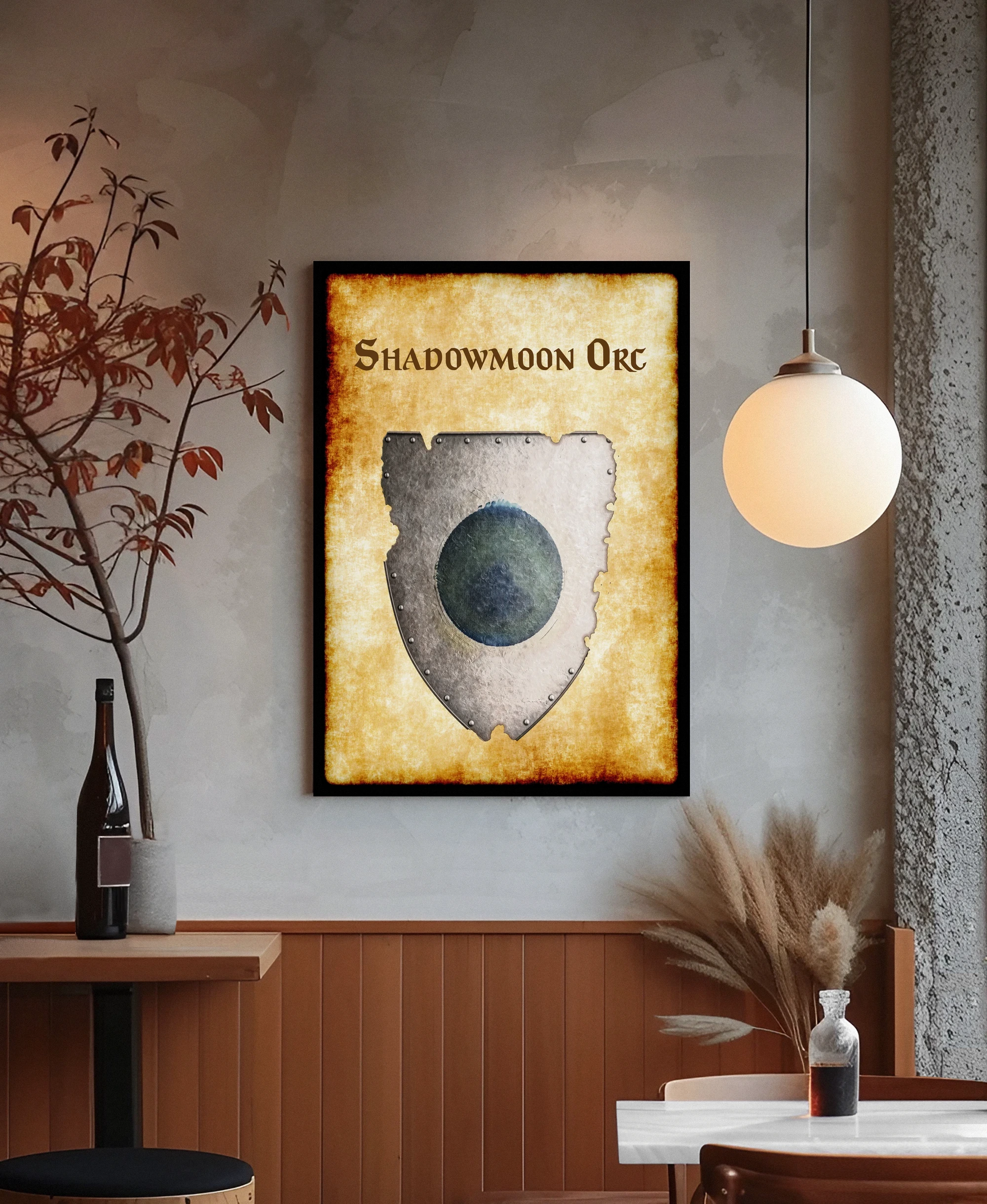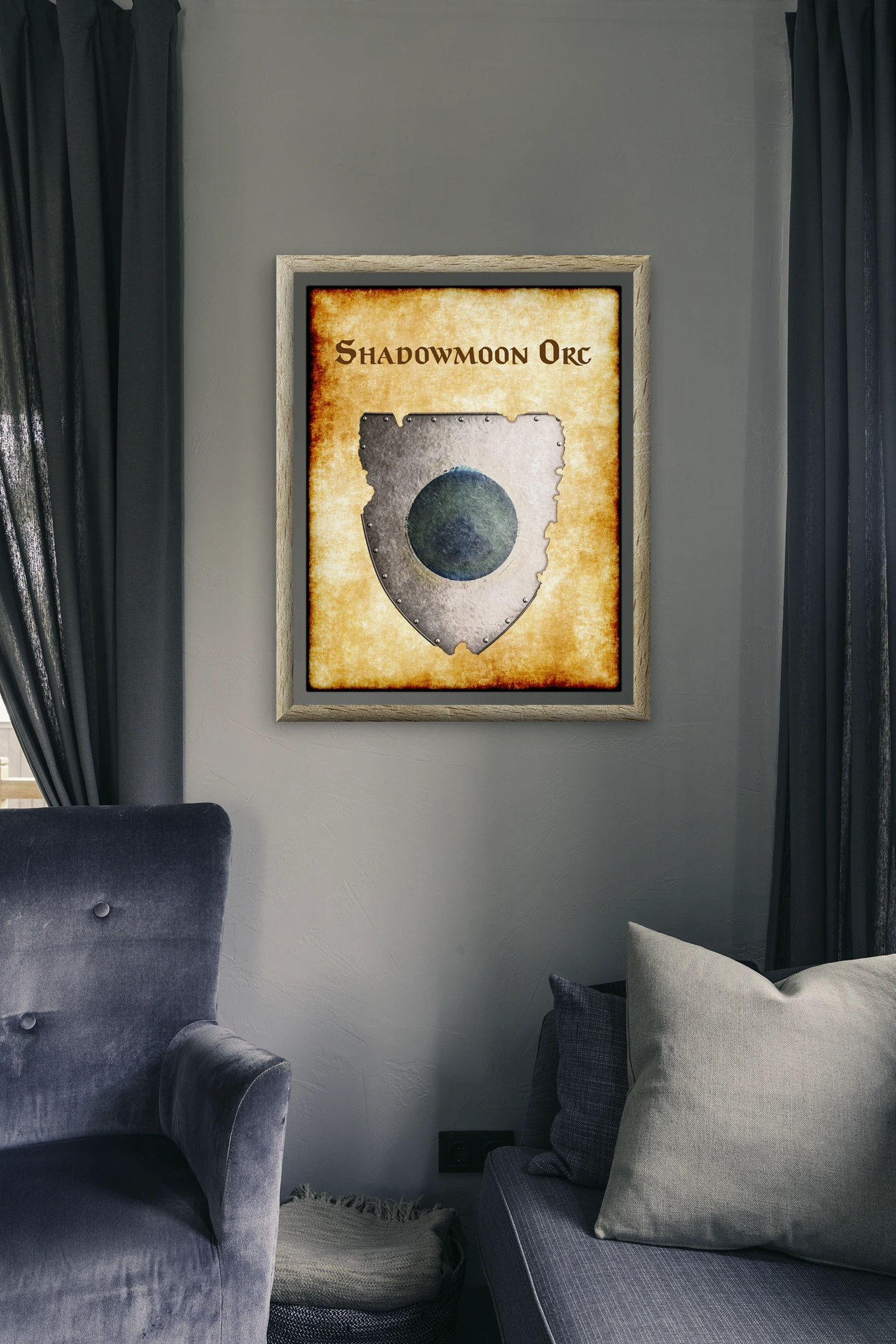 This is the heraldic device of an orcish war band operating under a lunar banner. DMs running campaigns in the Pomarj or Bone March need faction symbols for their tables. The shadowmoon orc Greyhawk heraldry canvas print documents a specific Flanaess threat that players will encounter.