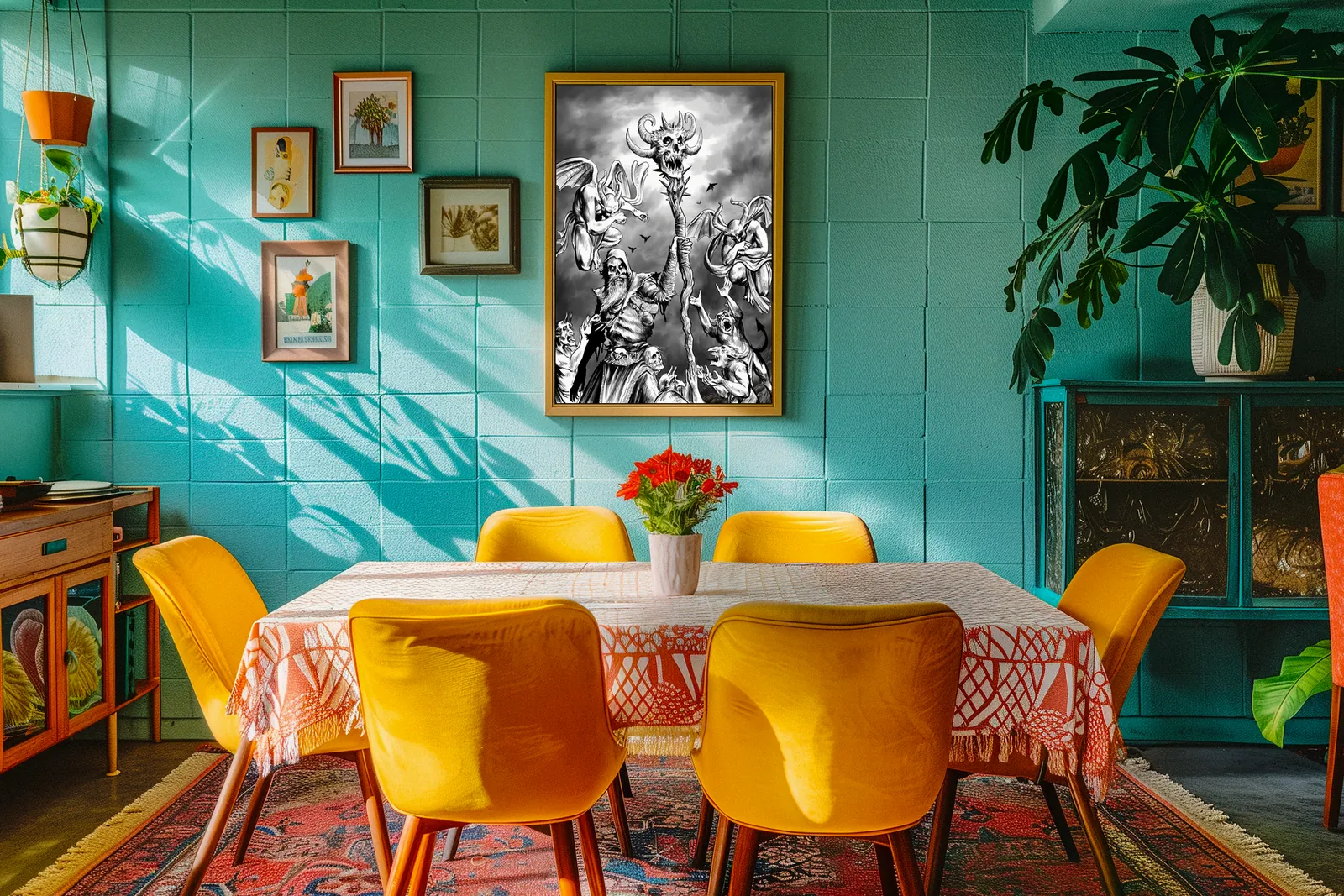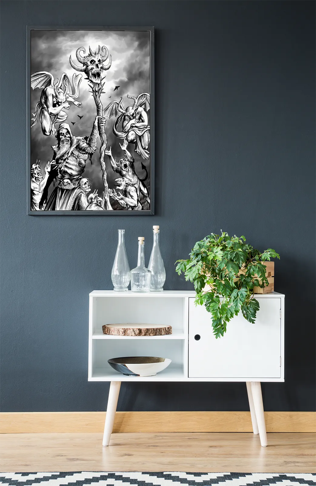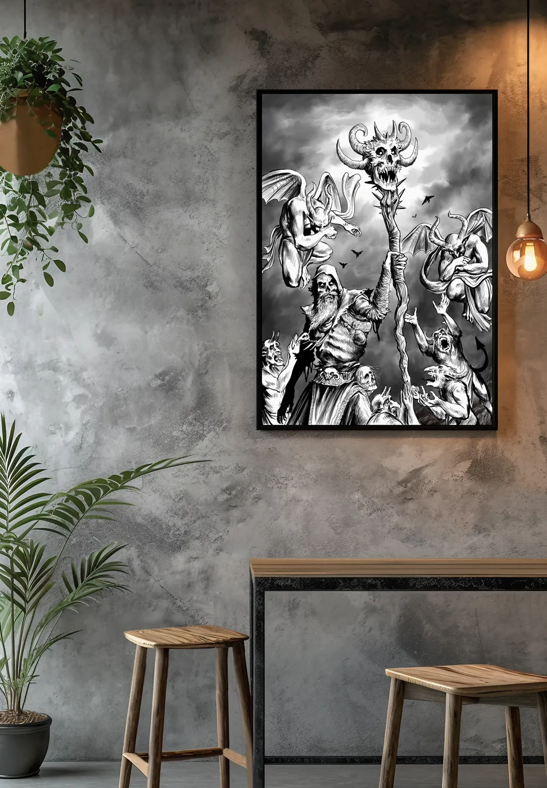 Therefore, this piece is ideal for game rooms, studios, or creative spaces where dark fantasy, cult mythology, and tabletop storytelling inspire atmosphere and imagination.