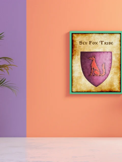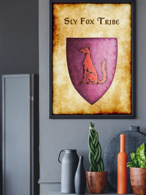 Tribal faction symbols work perfectly framed above a gaming table or campaign planning area. Moreover, the fox’s watchful presence reminds players that intelligence trumps strength in Greyhawk politics.