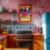 Above a bookshelf in a reading room, Steam Rex commands attention during game nights. Indeed, the bold colors complement hobby spaces where strategy and fantasy intersect.